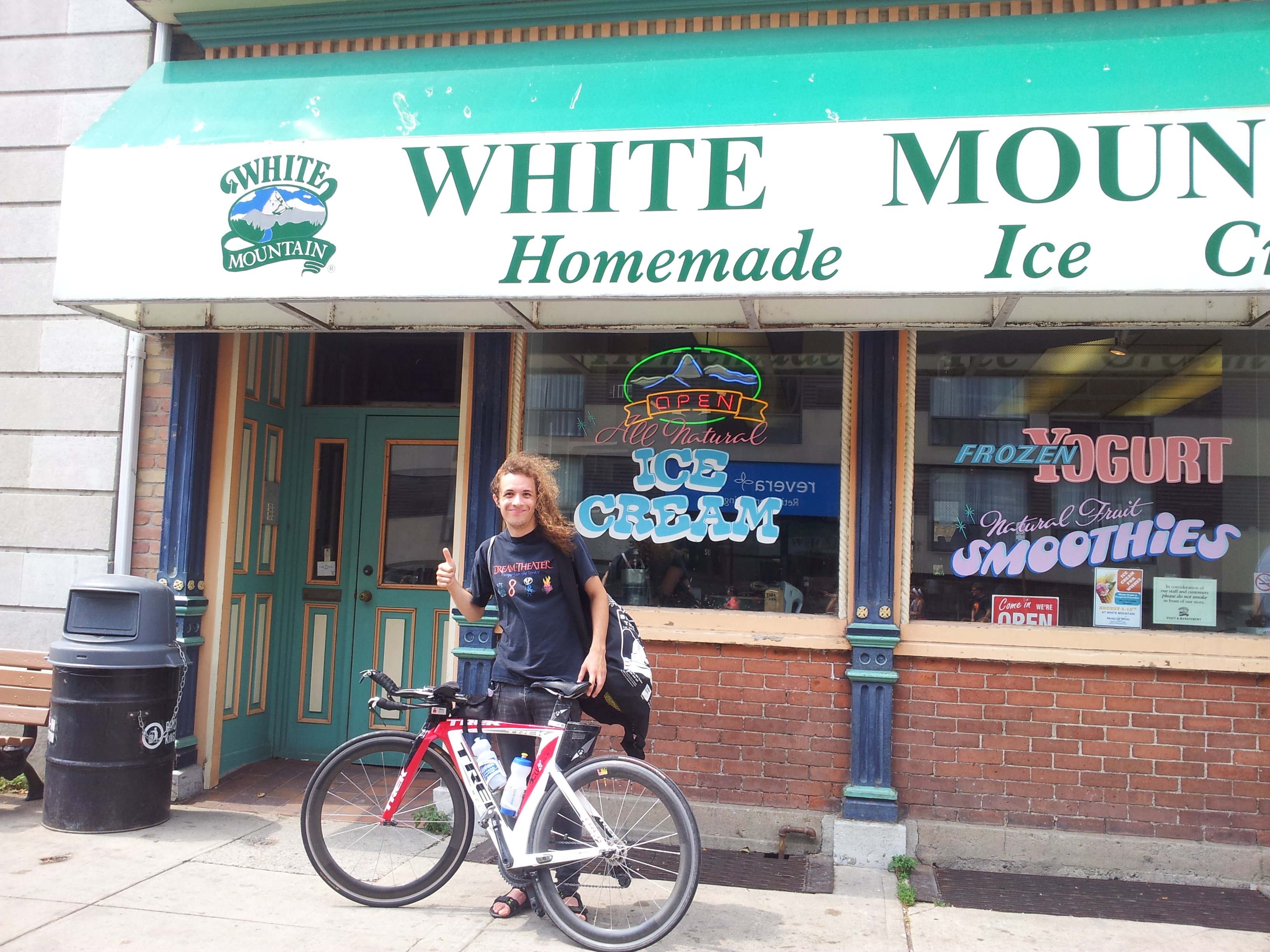 It was right about then that it started to pour down! On the plus side there was no lightning. I ended up under a tree with a few friends. We were soon joined by another friend who had a raincoat on but still needed the shelter of a tree in the storm. He is a small guy and he was riding a full disk wheel ( a disk wheel is solid and has no spokes, fast but very hard to control in the wind). To amuse ourselves while standing under the tree in the pouring rain we debated what the odds were that he would get blown into Lake Ontario on the bike course. He was not the only rider with a disk wheel and once the storm settled a little there was a mad scramble of wheel changing going on. I had ridden to the race so I did not have any extra wheels. I had 404’s a little harder to control than a standard wheel but better than a disk.