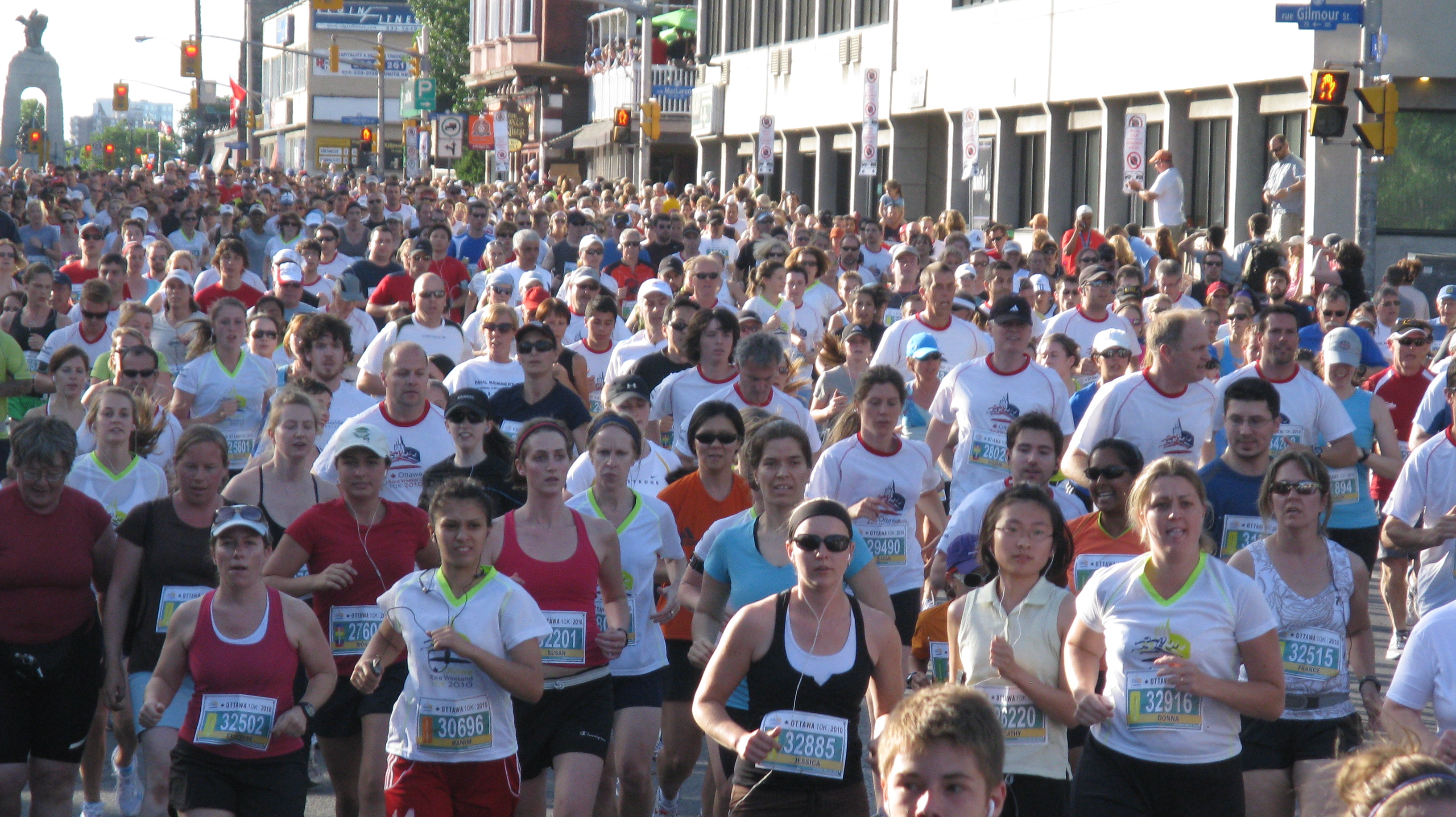 I would not bother to carry water in a race, that’s what water stops are for. One exception to that would be the 5k at Ottawa Race Weekend. There is a water stop but it can be VERY congested. You should be able to do the race without water but if it’s really hot and you really think you will need it you may want to carry water.