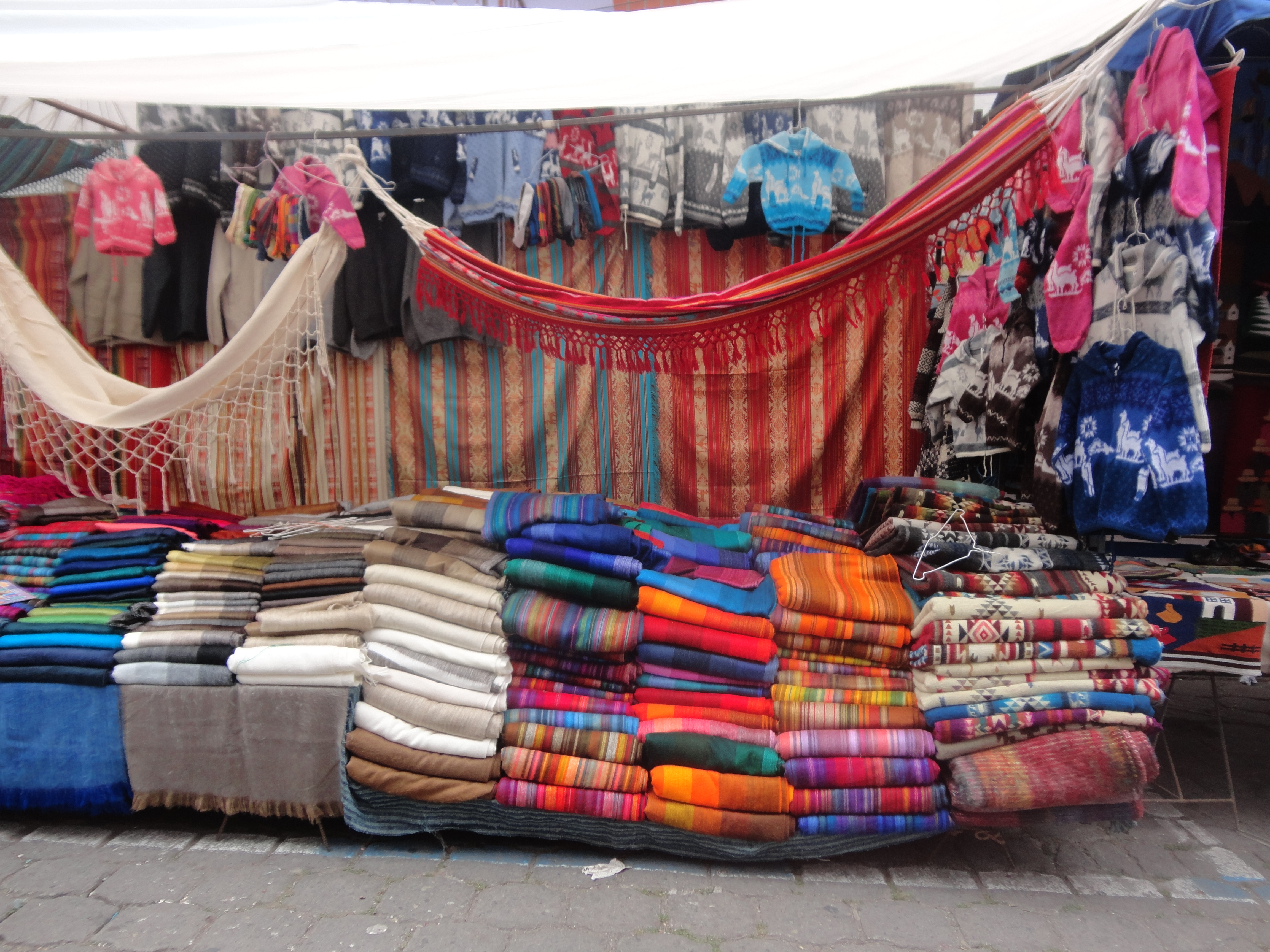We arrived in Otavalo and headed for the market which is truly huge. A lot of the vendors were selling similar stuff but there was still lots of really nice weaving, art, silver and knitting. We bought a hat for Harold, an alpaca sweater for me and some awesome hats for the kids. We bartered a little and generally paid about 20% less that original asking price for everything but even at the first price everything was a bargain.