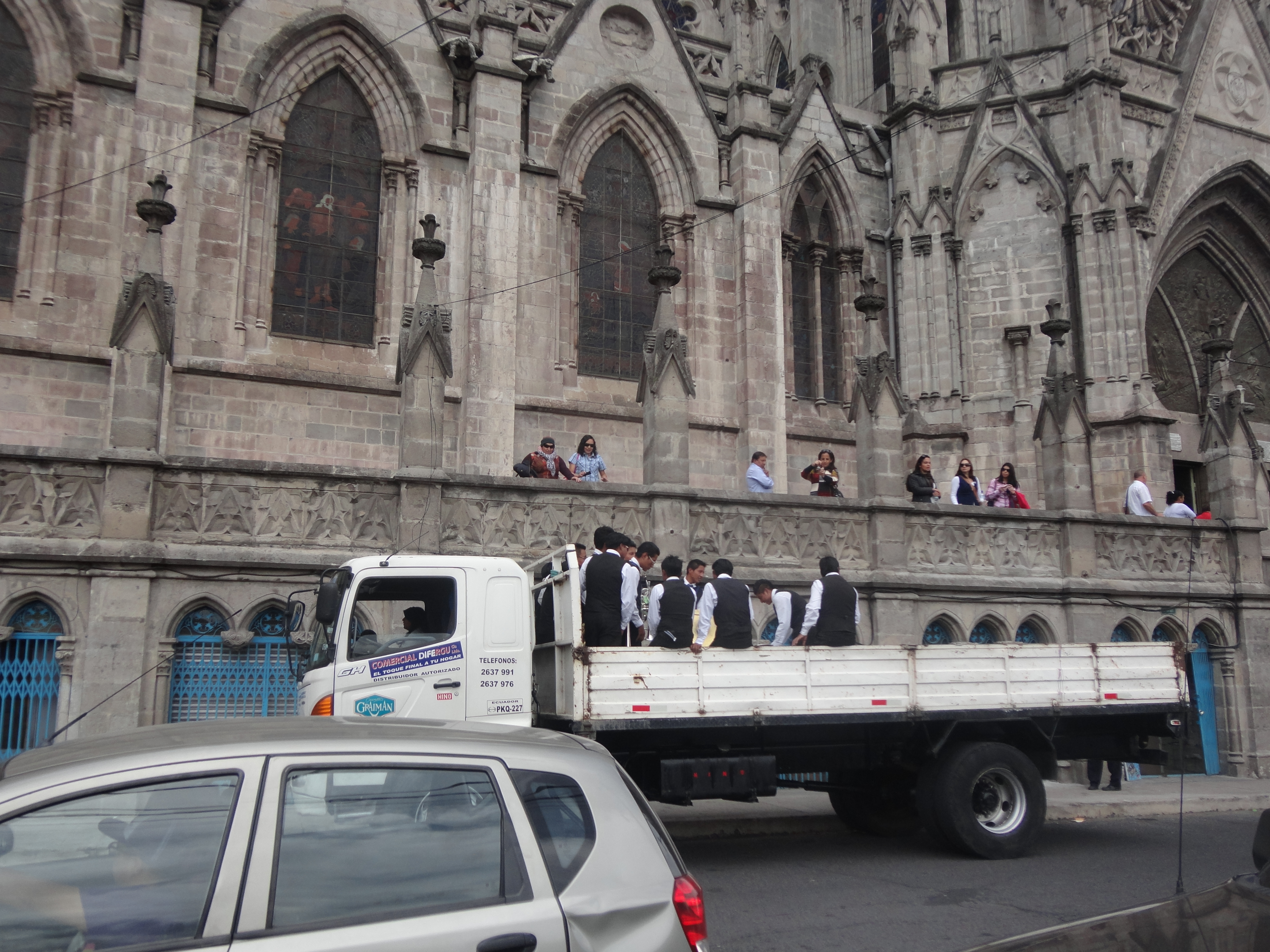 This was exciting because we were not sure which bus to take or where it stopped. We did find an official bus stop but a bus stopped for us before we got there (buses in Ecuador generally stop or at least slow down if you stand by the road and wave). They were yelling “Quito, Quito, Quito” so we got on. We had to stand again but that’s what you get for $0.20.