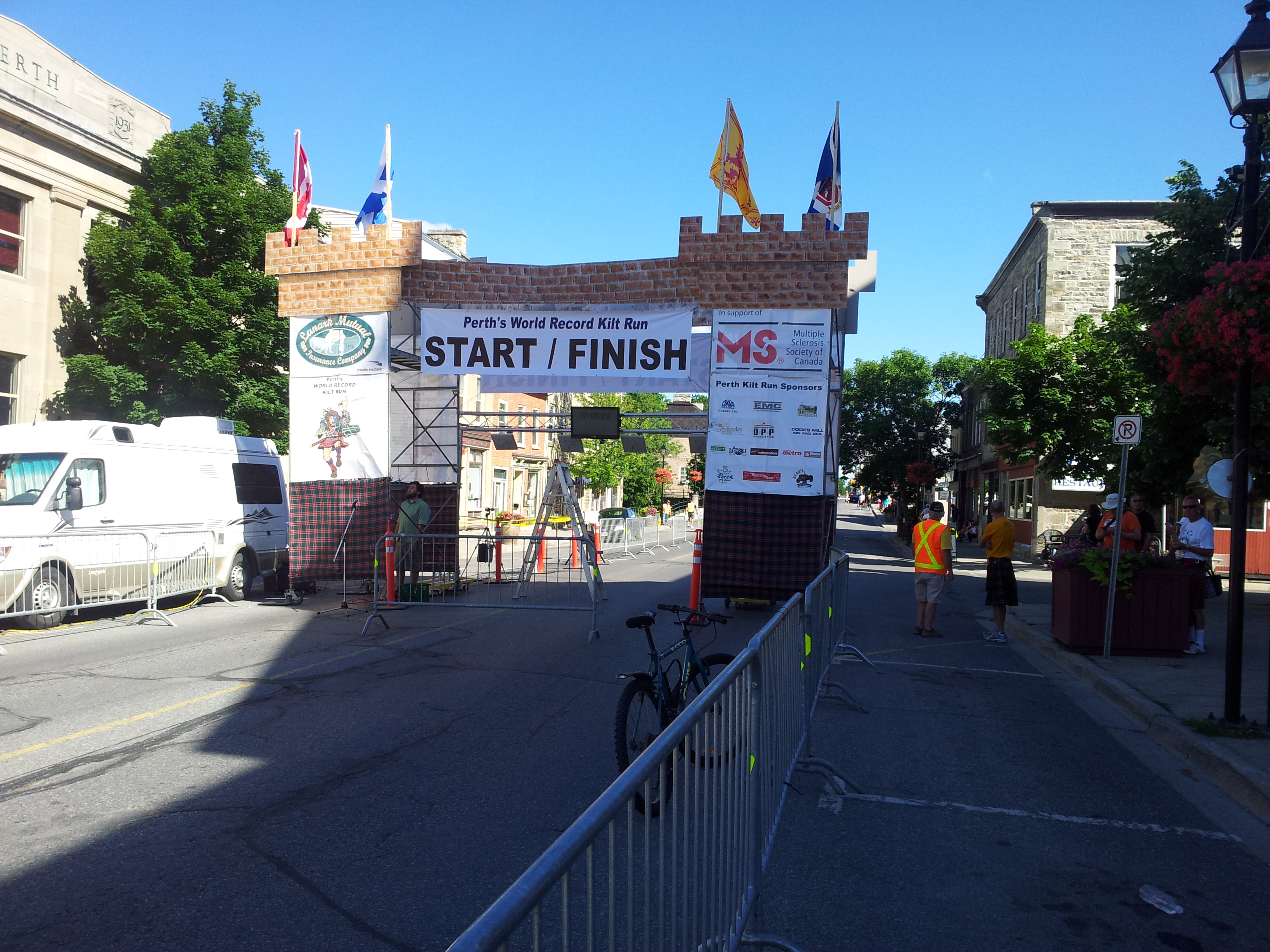Oh yeah about the haggis…while we were waiting for the race to start in Perth my son and I got in line to buy a sausage. The haggis toss was to the right. A haggis tosser with world record ambitions spun around and released his haggis at a 90 degree angle. Chris and I were just standing there waiting to pay when the haggis dropped out of the sky and missed us by inches!