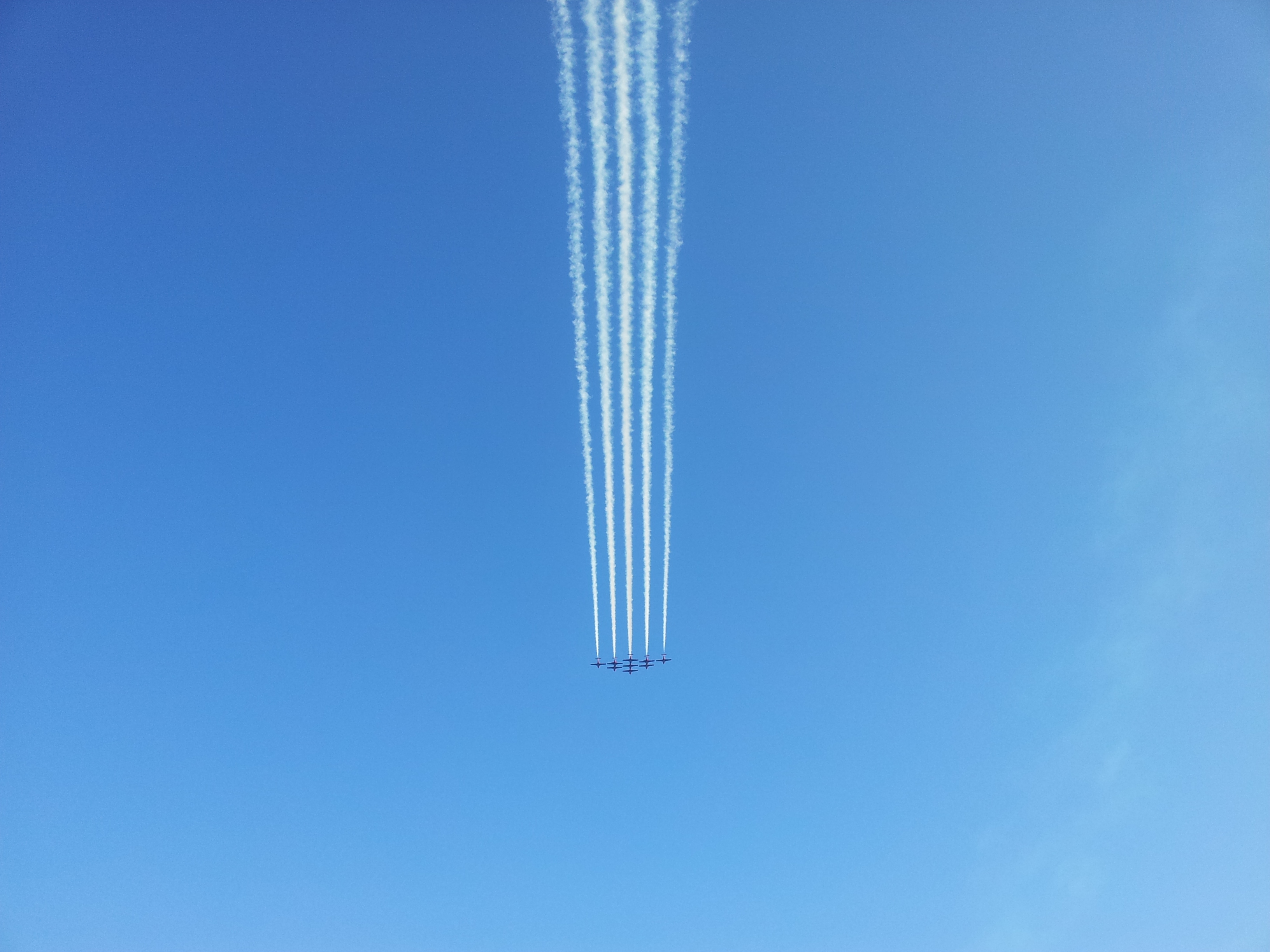 The Snowbirds did, not just one fly over, but three flyovers (honest) and the cannon went off, not just once but at least three times, for the first three waves of swimmers. It was very loud and the older gentlemen setting it off looked like they had not had this much fun in years!