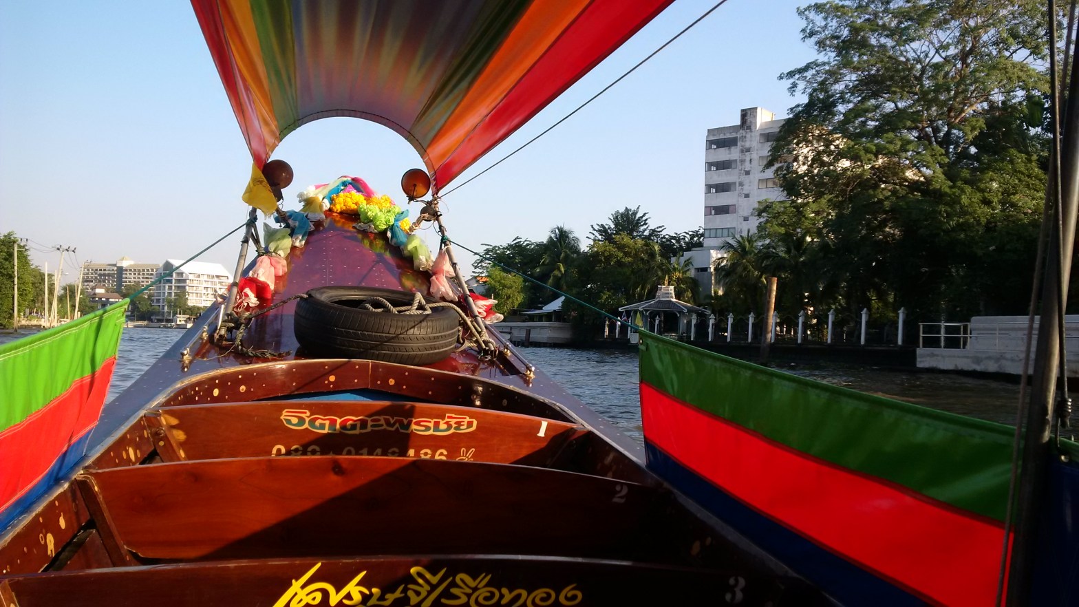 We had visit a floating market on our to-do list. This was our last full day in town and I thought I had seen a sign about floating markets by the water bus station so we walked over to check it out. The agent was not there but there was a lady there who was willing to let us go right away. It was more than we were expecting B900 for both of us but we decided to go anyway. After we paid, the lady who had sold us the trip went out onto the dock and started waving an umbrella around. She did it for a few minutes and eventually a long boat showed up. She had a discussion with the driver in Thai and told us to get in.