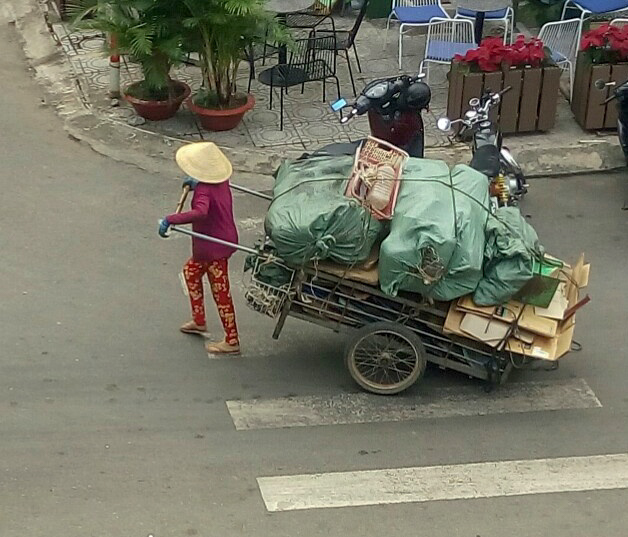We took secondary roads that were paved and rode past farms of bees and peppers to Bai Dai fishing port. It was an active spot and we saw many DIY boats, basically Styrofoam platforms with motors.