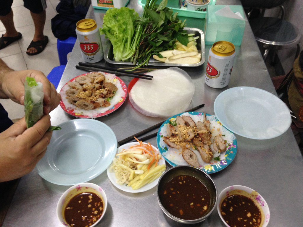 We ate at Nam Nuong Thanh Van on the hotel’s recommendation. It was great, real local food and mostly locals not tourists. We had fresh spring rolls with all the fixings. They were very good and the restaurant only sells spring rolls so we did not really have a choice.  They sat us at the tourist table and made sure we understood how to eat what was given to us. There was a man begging in front of the store. This was the first time and only time we saw anyone actively begging in almost four weeks in Vietnam.