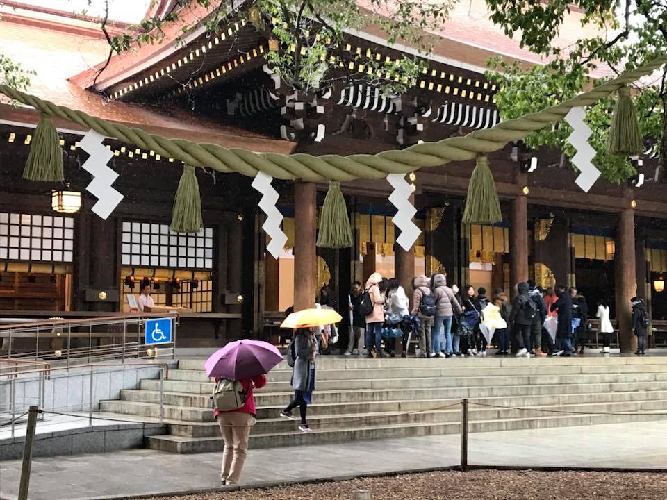 As we walked through the park towards Meniji Shrine the rain turned to sleet then to hail and finally to snow. It was cold and wet and we were not really dressed for the weather.