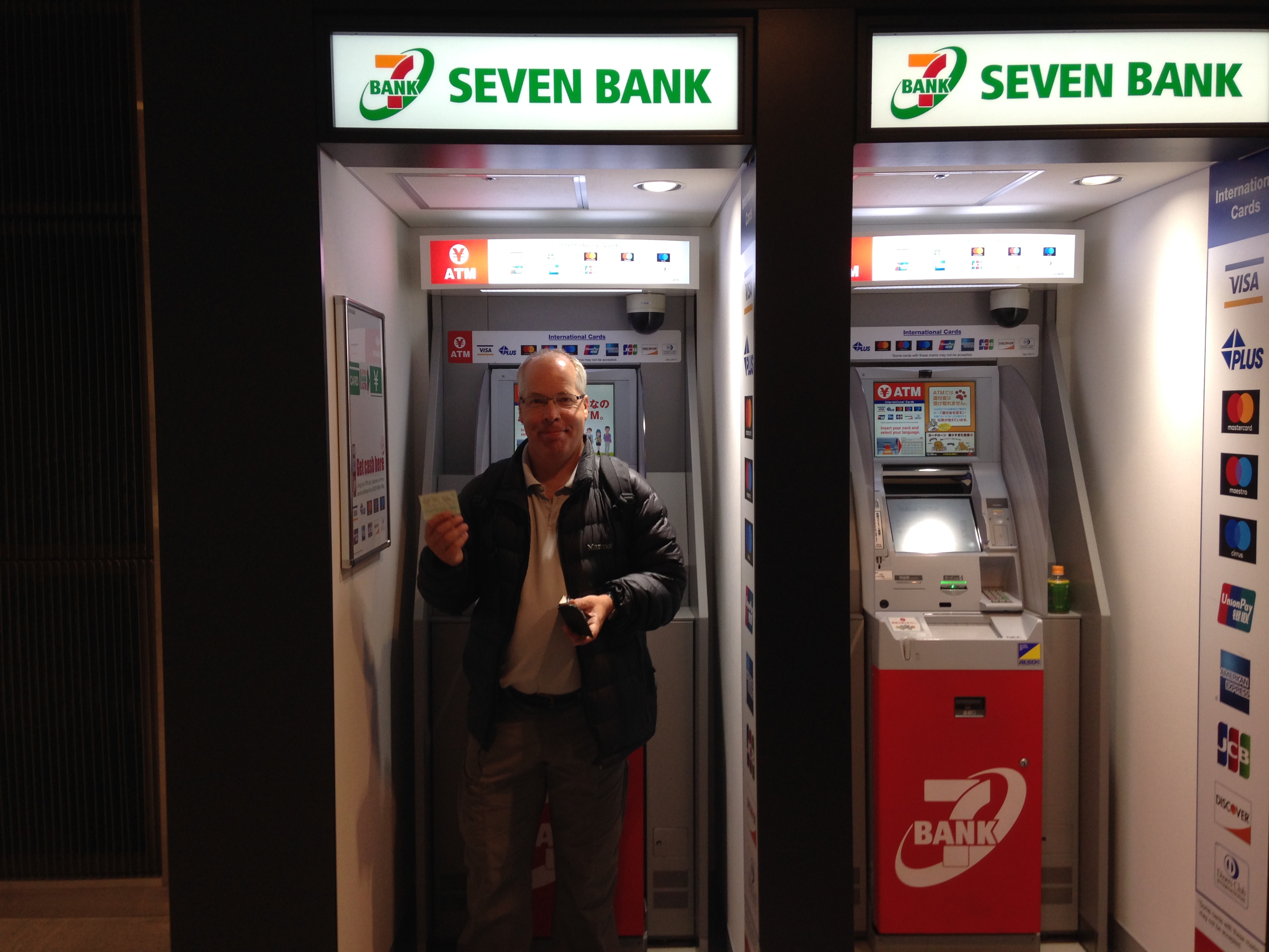 We needed cash so we found a bank machine that worked with our cards (the 7-11 on level one) and we headed to the basement where the trains can be found. There are machines where you can buy train tickets in English if you understand what you want to buy. We were not so sure so we lined-up to buy them from a real person. We took the JR (Japan Rail) Narita Express which is more expensive but it gets you from the airport to Tokyo Station in an hour. The return trip is 4000 Y. Buying a return ticket is cheaper than buying two one-way tickets. Our Visa card would not work in the machines but it did work at the teller. We were also able to buy a return ticket from a different station in Tokyo at the teller which I do not think can be done at the machines. The people at the counter were very helpful and they explained how to use the tickets.