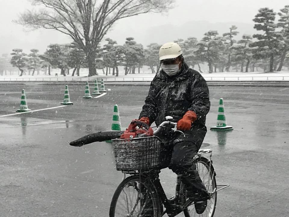 The snow was providing much amusement there were adults making snowballs and snowmen and kids playing in the snow. We also saw people with garden shovels, brooms and even leaf blowers trying to move the snow from one spot to another.