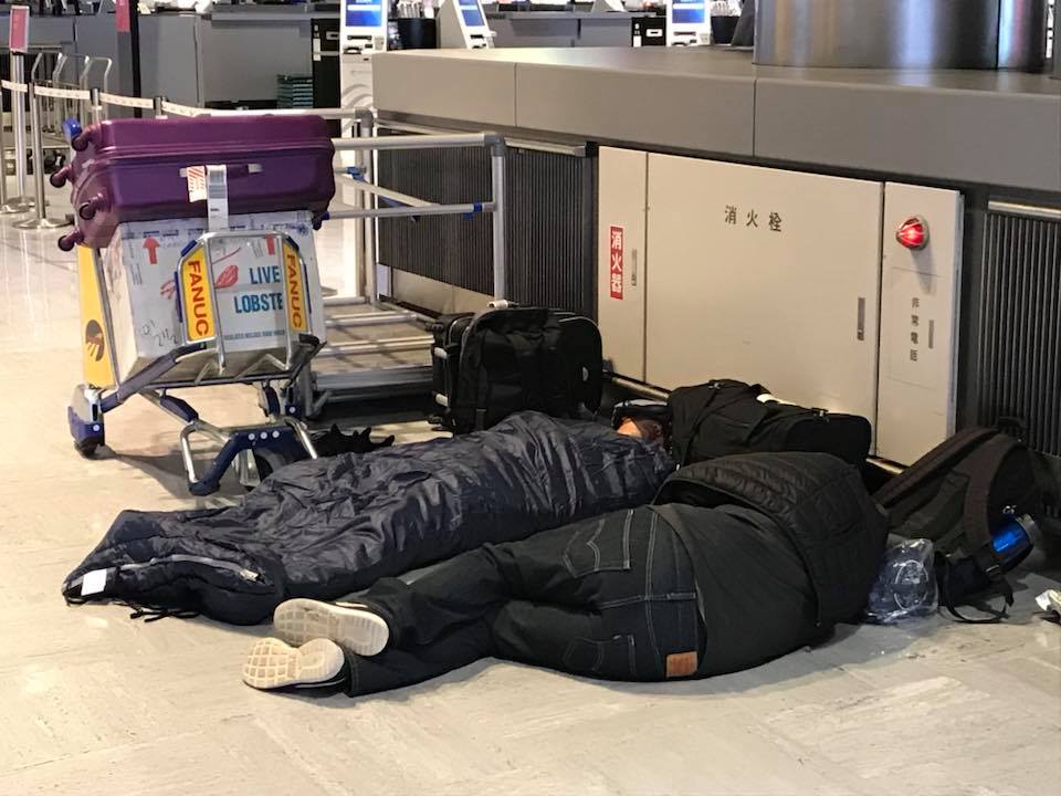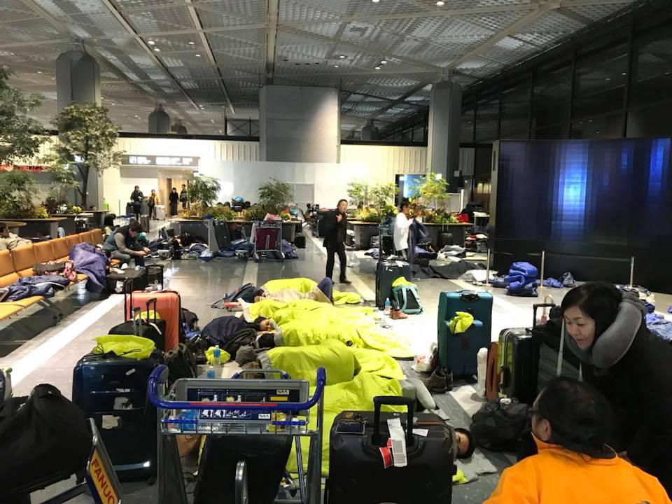 At this point we knew we were spending the night in the airport. We were a bit concerned about that as Japan is one of those countries where things are done a certain way and we were not sure if you were allowed to sleep in airports. We went back up to the main part of the airport and discovered that there were literally thousands of other people preparing to sleep in the airport. I believe the media reports later said 8000 people.