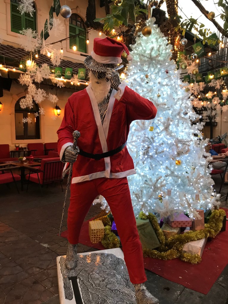 Christmas dinner was beers and curry back on the new extension of Khasan Road. The only sign of Christmas was the vendors selling Santa hats, the girls in very skimpy Santa costumes with money stuffed between their boobs and the Jonny Walker statue in a Santa Suit.