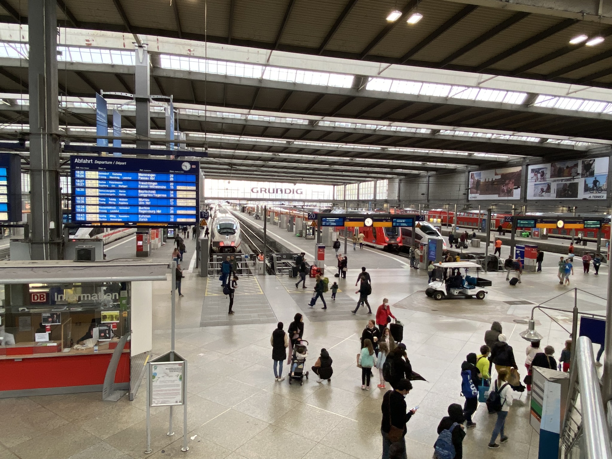The bags took a while to arrive on the baggage carousel, but we got them! We were taking a train to Munich, our final destination, for the day. There is a train station attached to the airport, it’s a long walk too. but there are lots of signs. After much discussion we booked train tickets in advance for a train four hours after our scheduled landing time, three would have been enough.