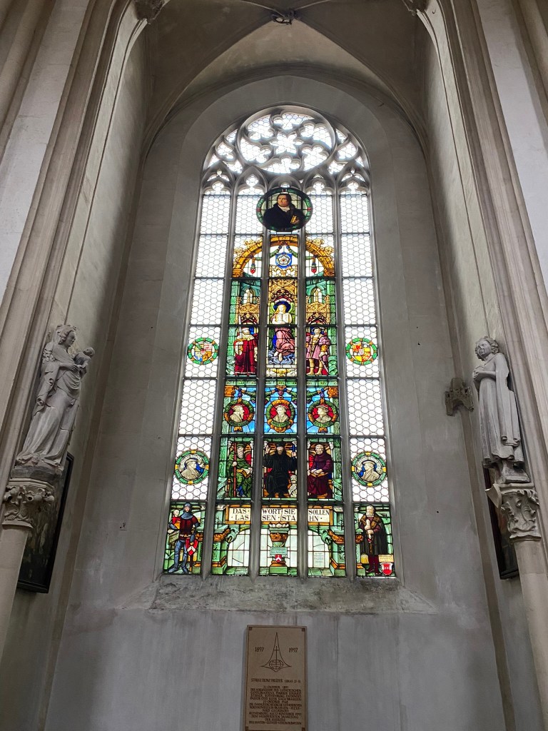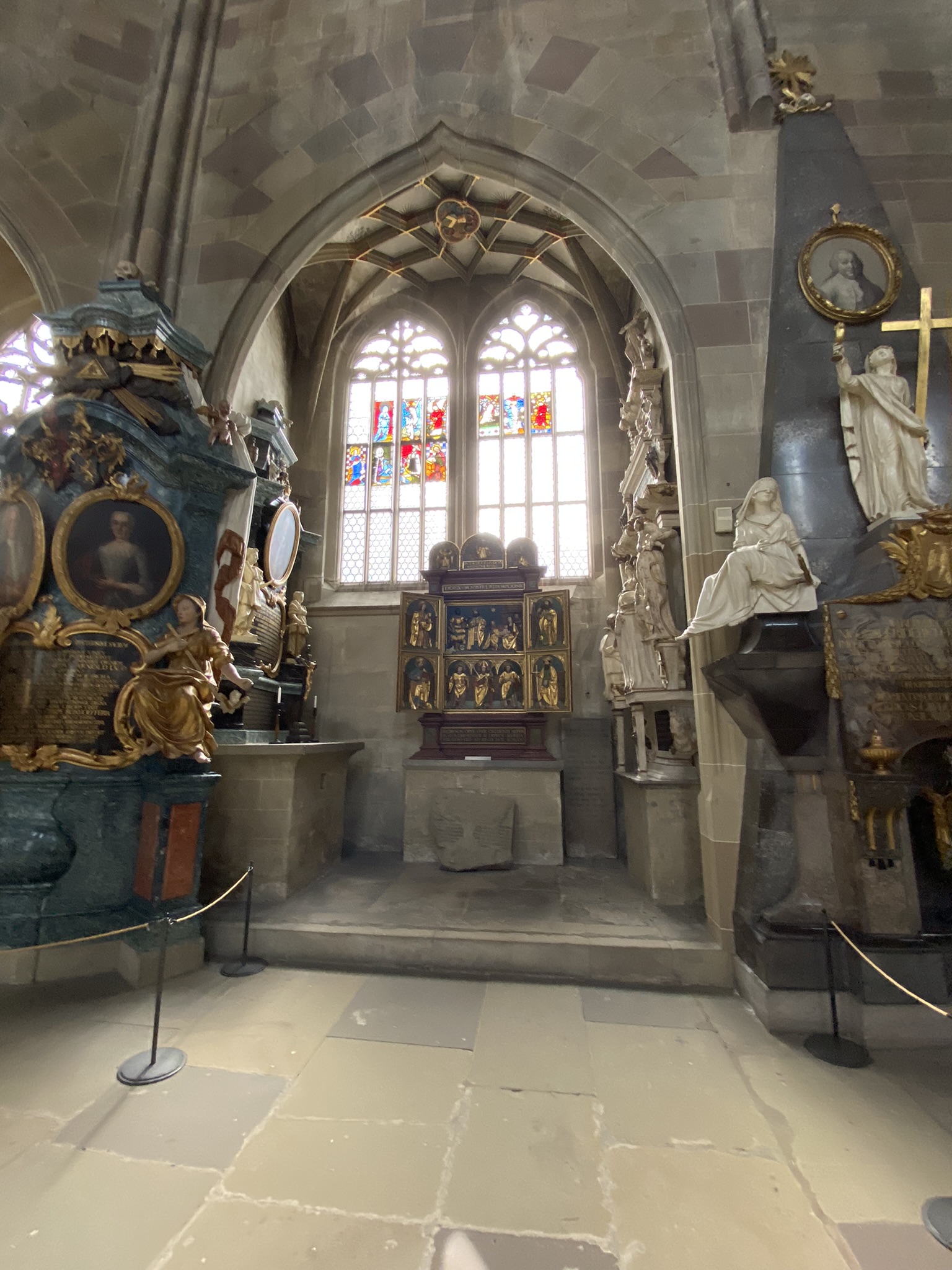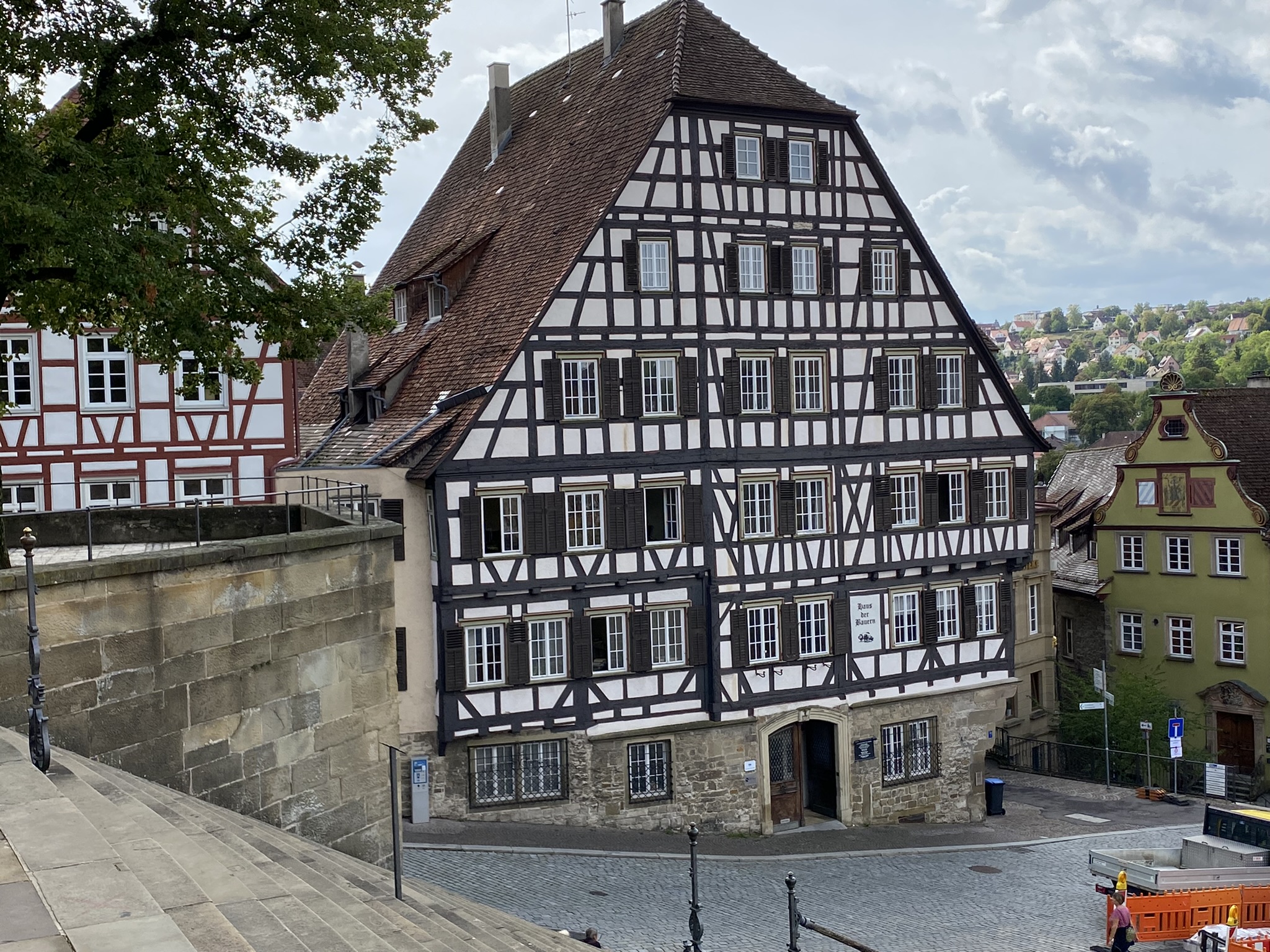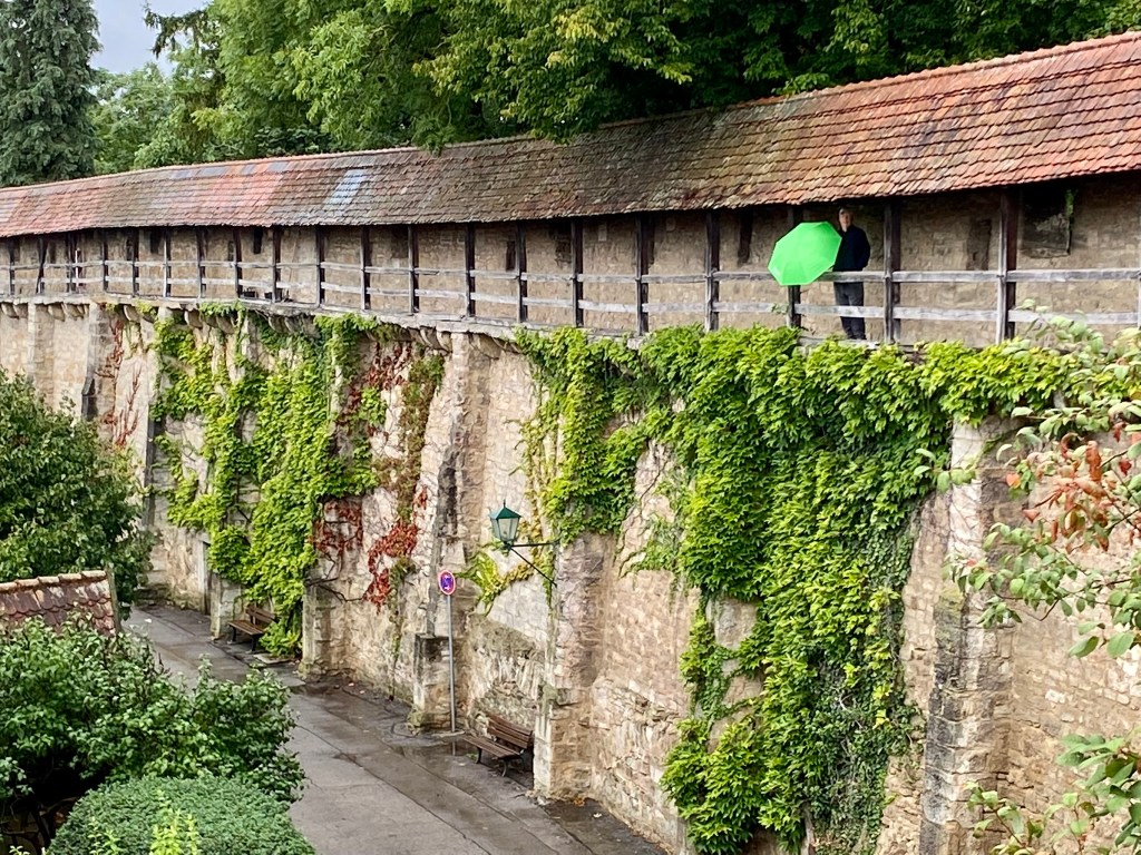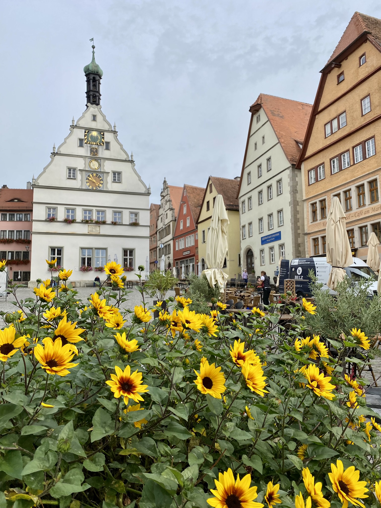 In Rothenburg ob der Tauber (literally translated to Rothenburg on the Tauber which is the river which flows by it) we stayed within the old city wall at Freud Pension. It’s just inside the city walls. The room was basic and clean and a traditional German breakfast of buns, cheese and wurst with yogurt was included. We chatted with our host in a combination of German and English. The pension was right across the street from one of the town churches and we could hear the church bells and the organ from our room. We loved it, but our host shared that during the lock down the organist would often spend all day playing and it got to be a bit too much. There were lots of tourists in Rothenburg, but it is obvious that they are set up for many more. We were told that in general the tourists are back, but the Chinese are not allowed to travel and that is still having a big impact. Like Canada Germany was locked down for several months and although the government provided help as they did in Canada the tourist businesses are still struggling.