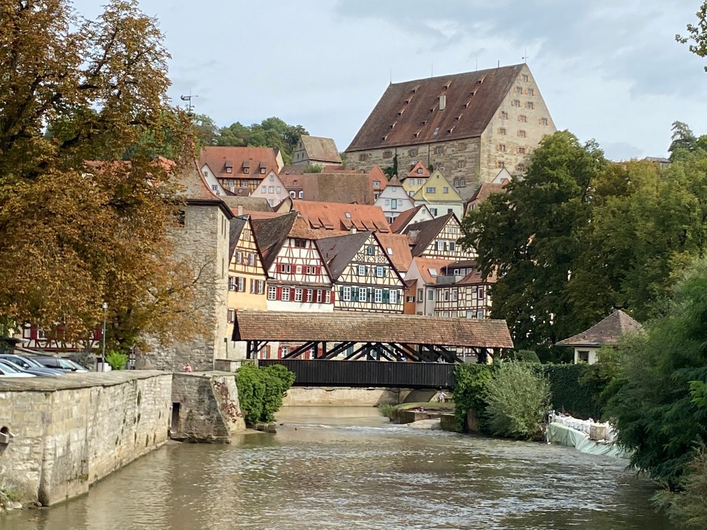 We did a day trip from Rothenburg to Schwabisher Hall. It’s another, nice old city along the river, with a lovely market square where you will find St Michael’s Church.