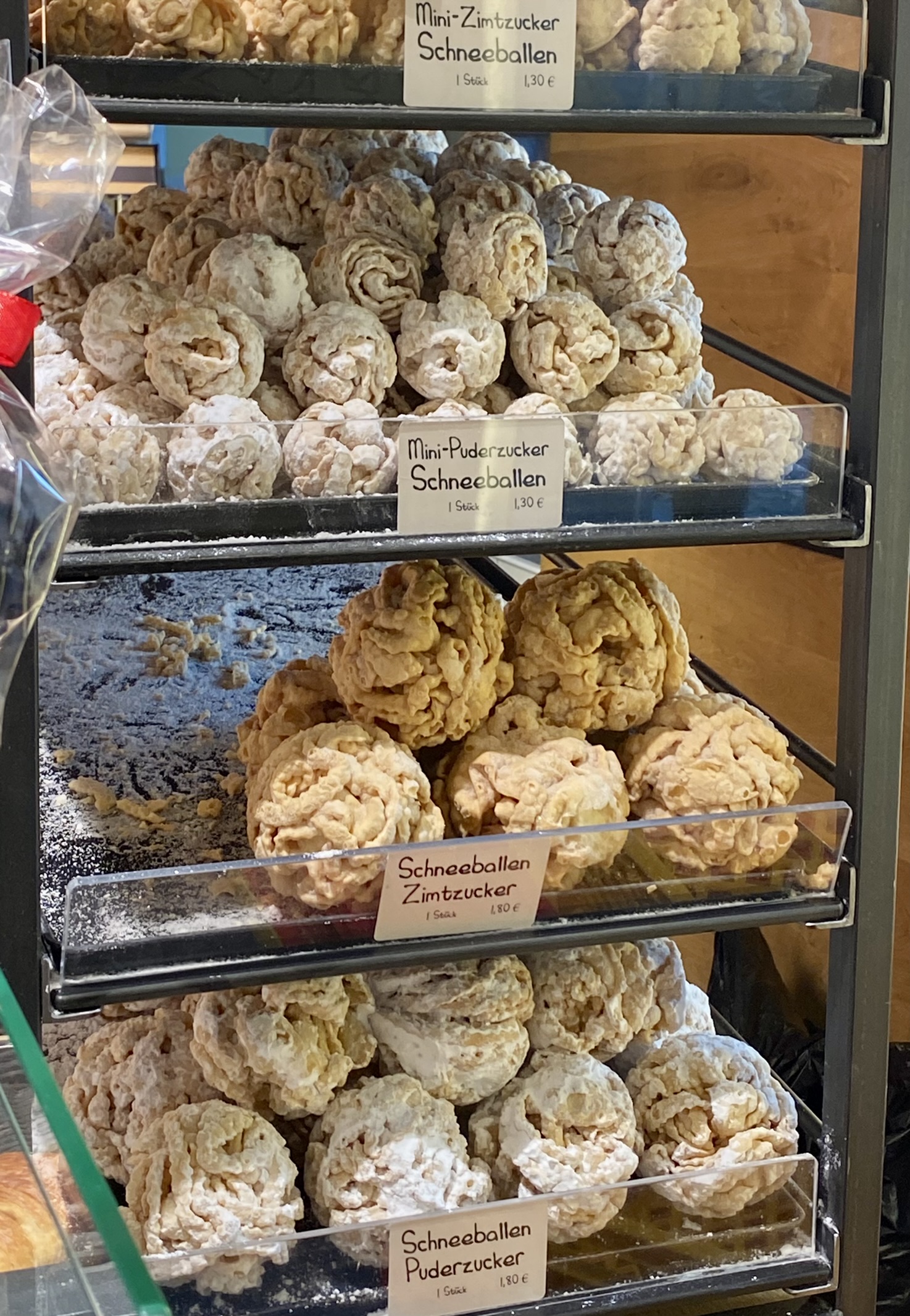 The other thing Rothenburg is known for is Schneeball (Snowballs), a pastry treat sold only in Rothenburg. It’s basically a roll of pastry bits formed into a round snowball. They come in several flavours, we bought one and tried it. It was Ok but I think it would have been better with coffee.