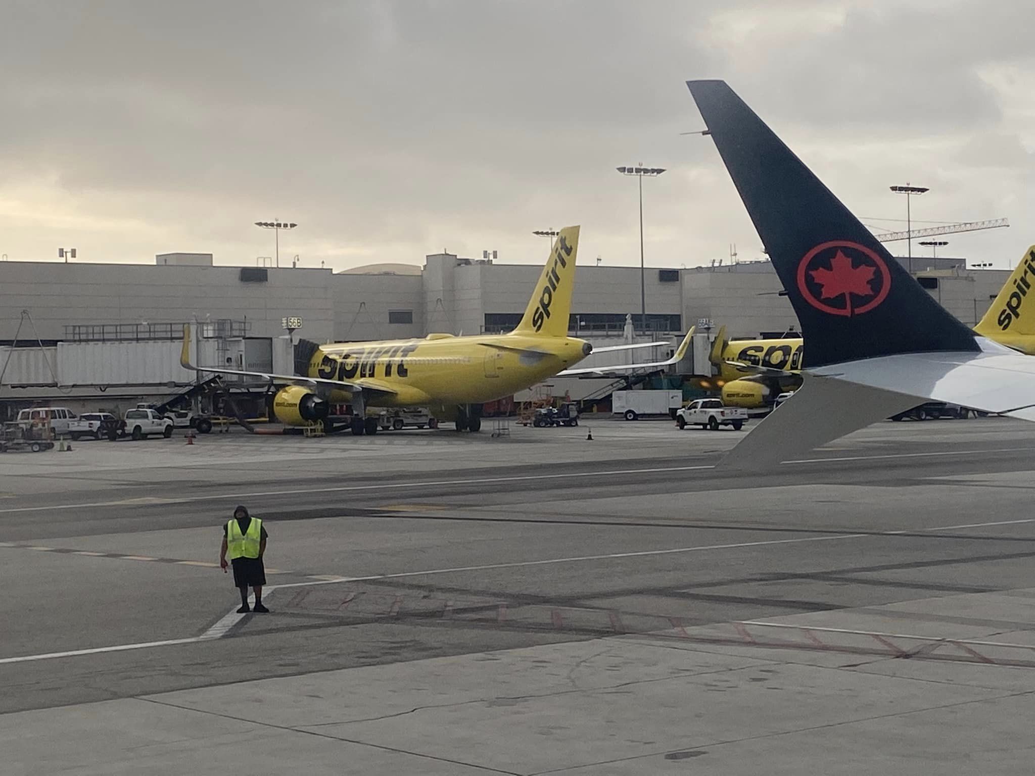Initially, it looked like we were getting off in LA which at that point was fine with all of us. We had no desire to do any additional landings. The guys behind us suggested that walking to Vegas from here would be fine with them at this point. Personally, I was fine with the idea of spending the night in LA and waiting a day to get to Las Vegas. Apparently, TSA was not keen on us getting off the plane in LA because we had all cleared customs in Calgary to go to Las Vegas. I don’t know if it was that or the weather, but the pilot was back on the intercom. He started with “ I have been flying for 35 years” the response from the peanut galley behind us was “It’s always a bad sign when the pilot starts by telling you how much experience he has”. The pilot continued on saying the wind had died down a bit in Las Vegas and he was “pretty” sure he could land the plane. Those of us in the plane were kind of hoping for a slightly more positive statement. Something like, I know I can land this plane…easily!.