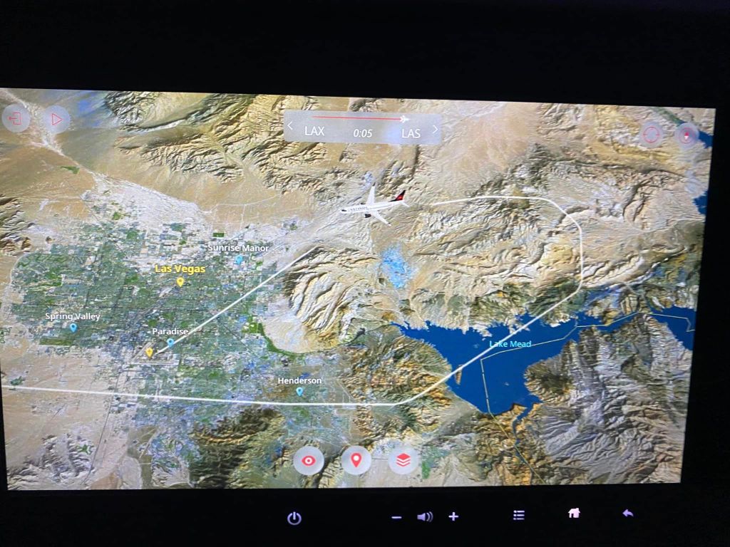 The flight path on the display showed us heading straight across the desert toward the pacific. We were eventually told we were going to LA because they could not land in Vegas