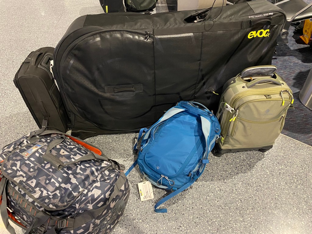 We flew from Ottawa to Las Vegas via Calgary for the Ironman 70.3 World Championships. I was racing so my bike was on board. My biggest concern when we started the trip was that my bike would get lost between Ottawa and Las Vegas. This was reinforced by a recent trip to Berlin for the Berlin marathon. My bags arrived but my sister’s bags disappeared for almost a week, and she was left scrambling to find pre-race clothing. We both had all our racing gear in carry- on but the little extras were checked. Everything I else I needed for this race was in carry-on, but bikes don’t fit in the overhead compartment! I put an Apple AirTag on the bike and hoped for the best.