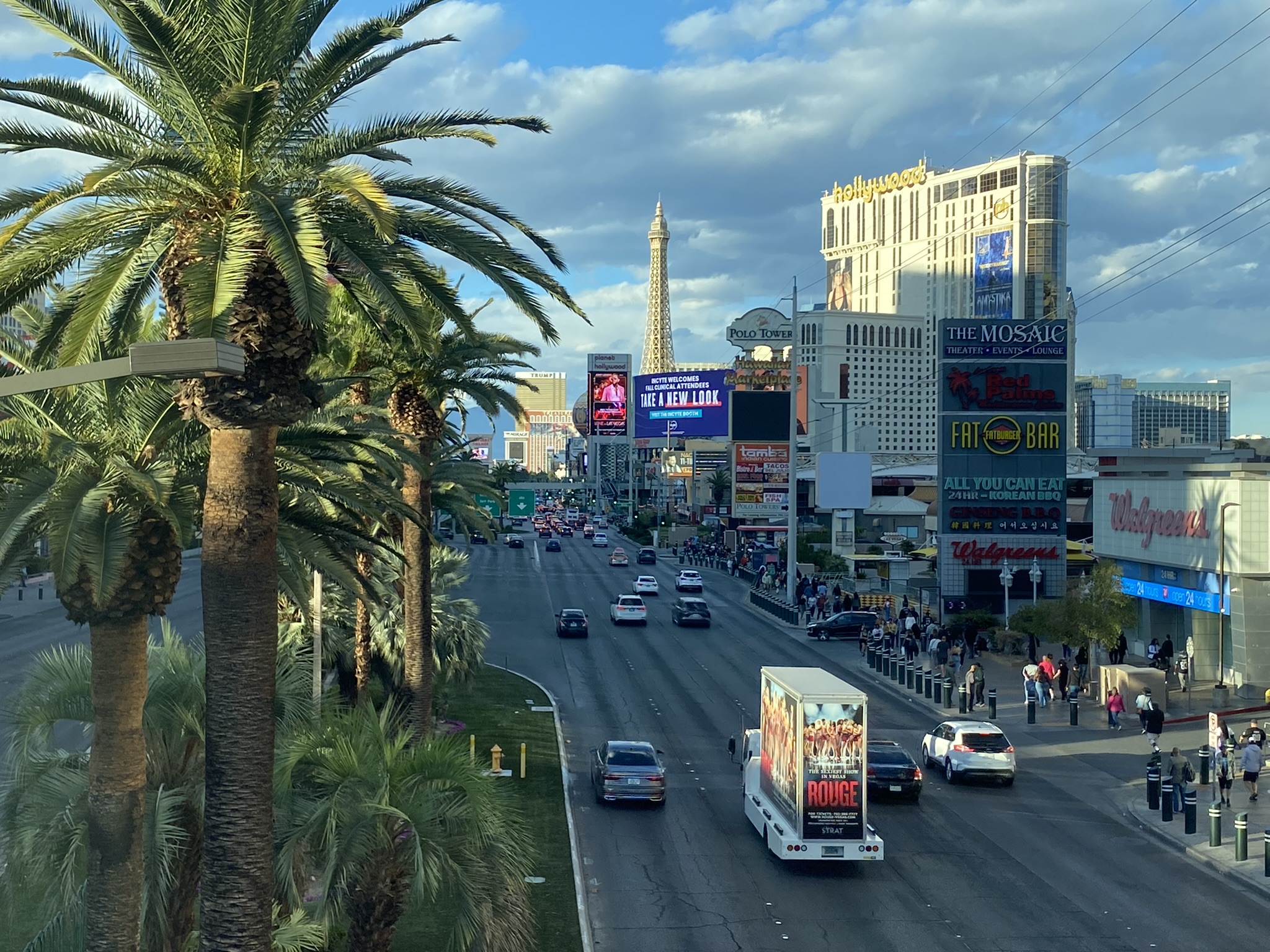 We boarded on time, but it was snowing so they had to de-ice the plane. It was the first snow of the year, and the first time they had needed to de-ice planes, so it took a while. We were about 40 minutes late taking off. We were on Air Canada Rouge. I am fine with Air Canada, but I am not a big fan of Rouge. You get very little included on the flight. The flight was a little rough, but not terrible. When we got closer to Las Vegas it got bumpier.