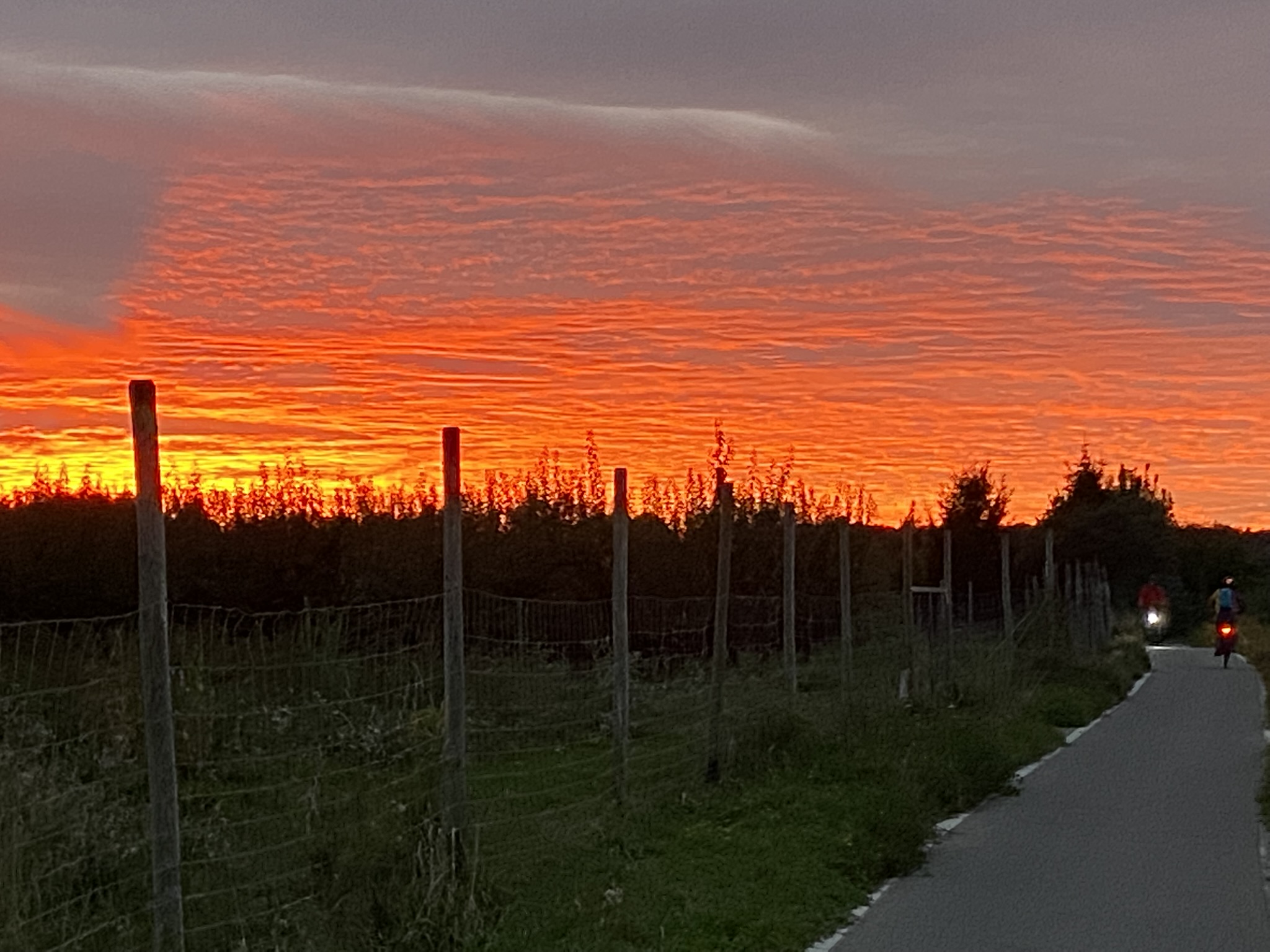 We had actually planned to ride to Bregenz in Austria and ride the ferry back, but we stopped to visit friends and were pleasantly distracted for a couple of hours. You can take a train with your bike back as far as Friedrichshafen which is about 20km from Meersburg. I had the clever idea to ride back. To make a long story short it was a good thing we had lights.