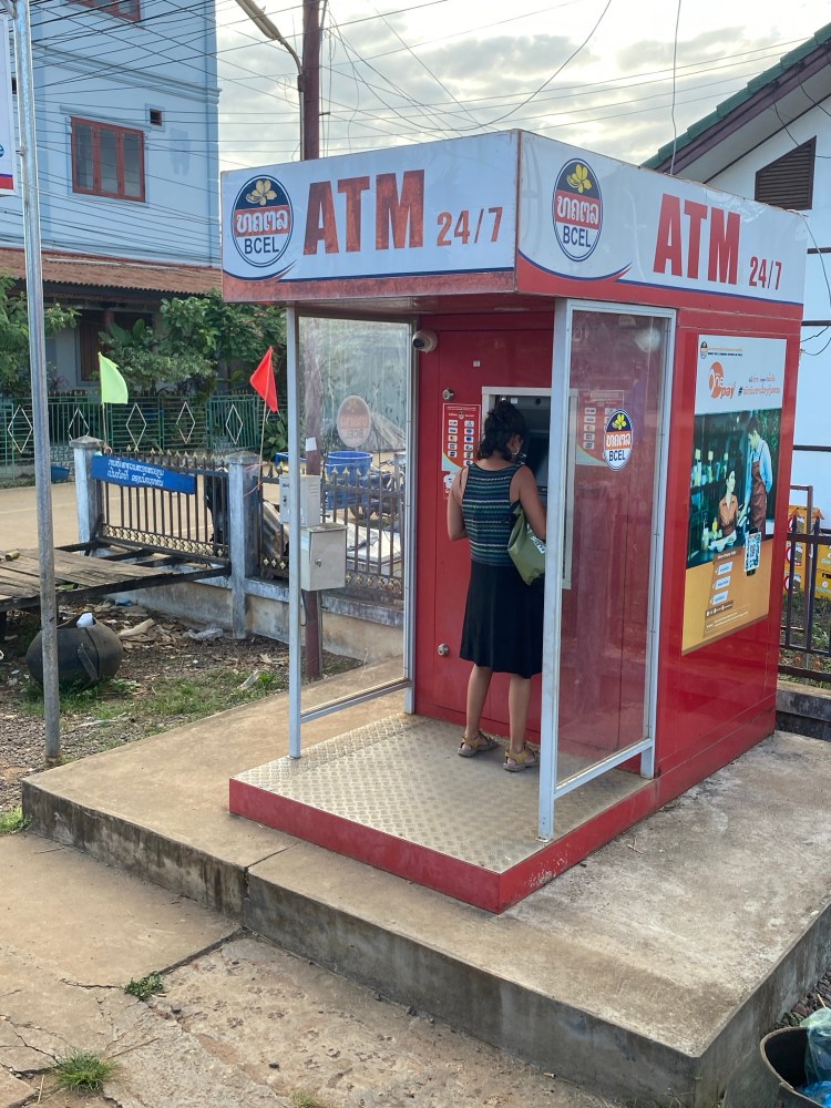 The vans all take you to Nakasong. They park up the street and you have to walk down to the ferry boat station about 100m away. On the way you pass an ATM. There are no ATMs on the islands so you may want to stop here. It is a BCEL ATM. These are very popular with the tourists from Europe because they have a 2,500,000 KIP limit and the service charge is only 20,000 KIP.