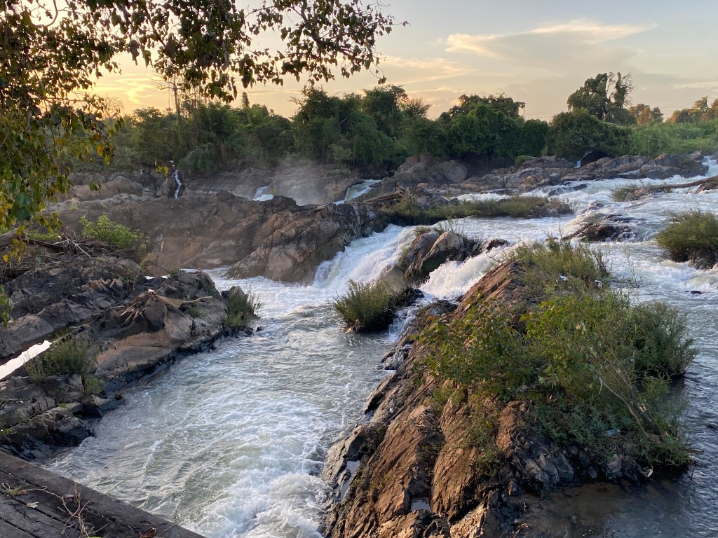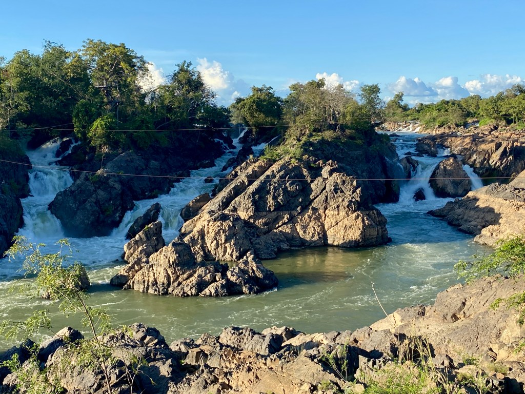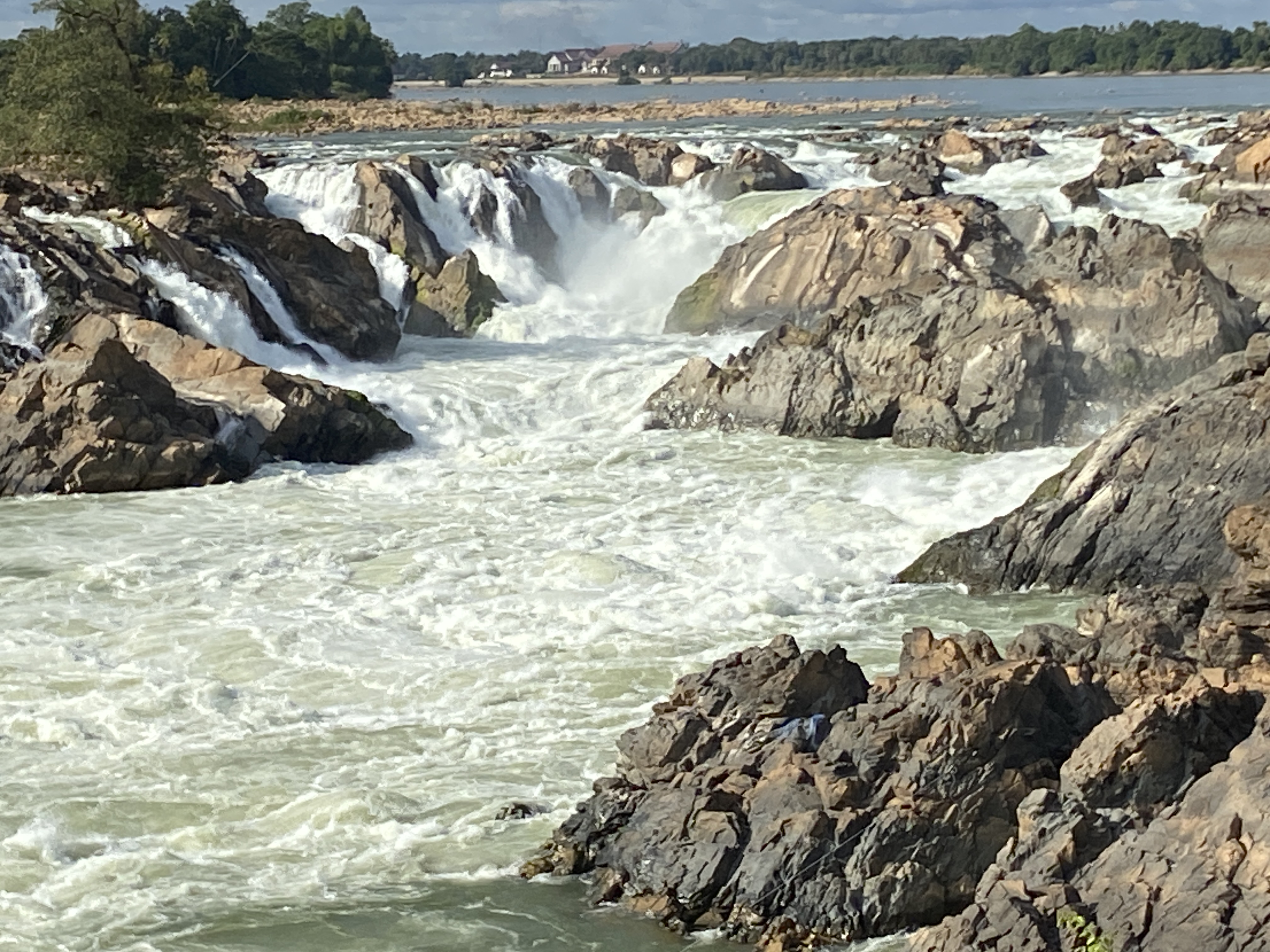 Khone Pa Soy Waterfall on the other side of the island is much smaller. It’s free but the restaurant is abandoned and the suspension bridge is really sketchy. We did not cross it but the locals do. Its just off the main road so it’s still worth the detour.