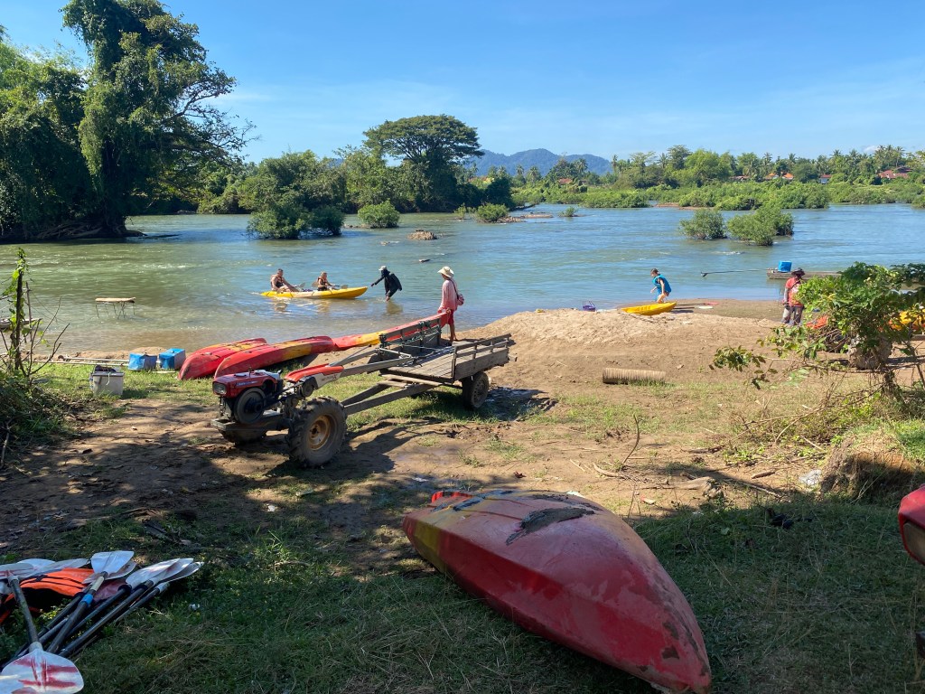 There are two kayak tour companies on the Island Mr Lek which is associated with Mr Moo’s guesthouse and Green Paradise. We went with Mr Lek and we would 100% recommend him. Everything we read said $26 US we only paid $20 but it was easily worth $26. The price difference may have been luck or it may have been due to the devaluation of the KIP against the US dollar. It lost 43% of it’s value in 2023. The posters for all of the tours are generally incorrect. Pre-COVID the dolphins were a big part of the tours. Laos was completely shut down for three years and the country is still recovering. They have not been able to update the signs.
