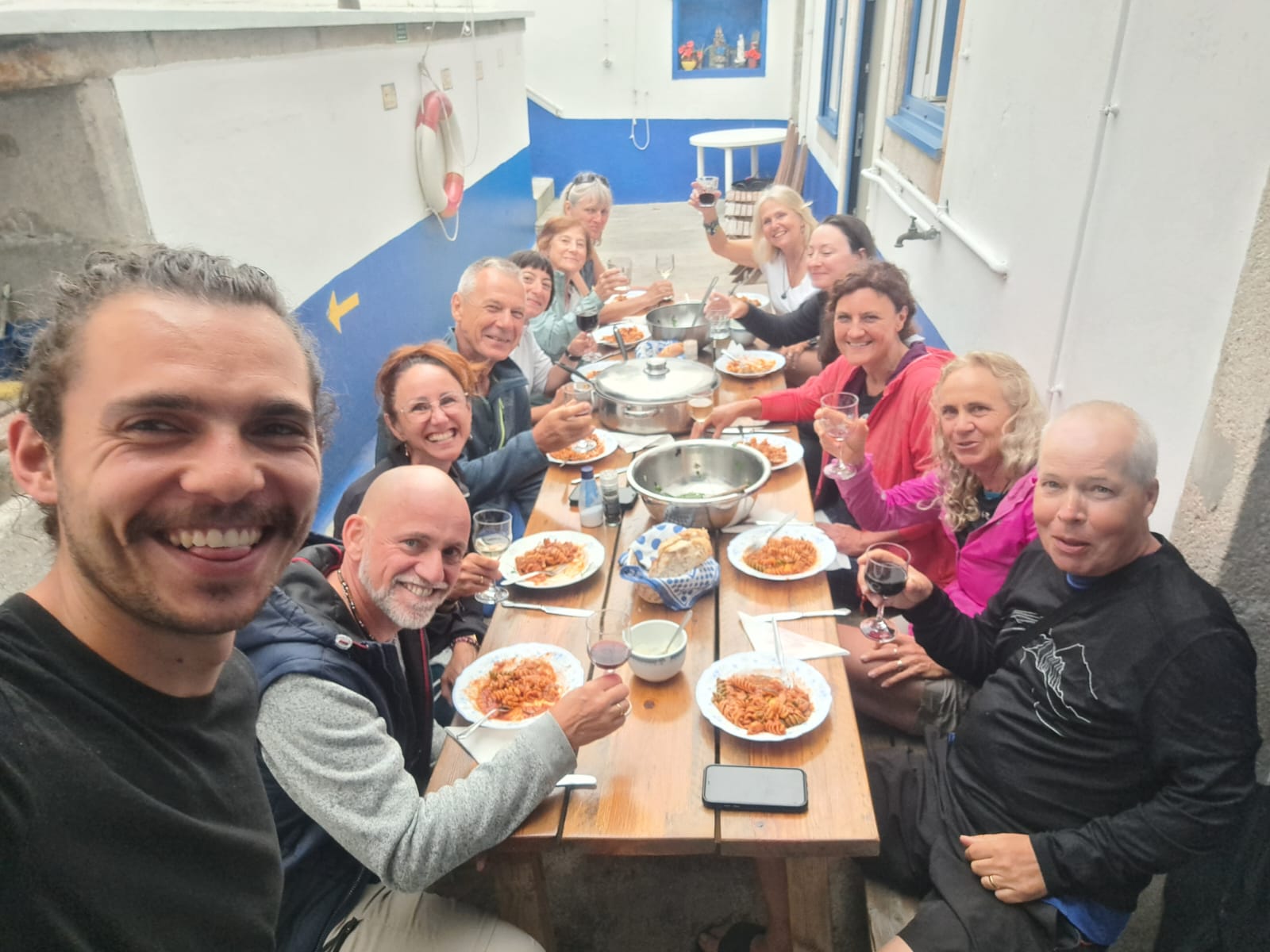 It was a great location and a nice hostel but just after we arrived the weather broke and there was a torrential thunderstorm. We were trapped in the hostel. We did not have any food for dinner. Breakfast was included and at one point we thought we would be eating breakfast for dinner. The storm eventually settled, and we found an open restaurant. To be honest it was not very good but it was food and the wine was cheap. Wine in Portugal and Spain is very cheap! So we celebrated our last night in Portugal with a glass.