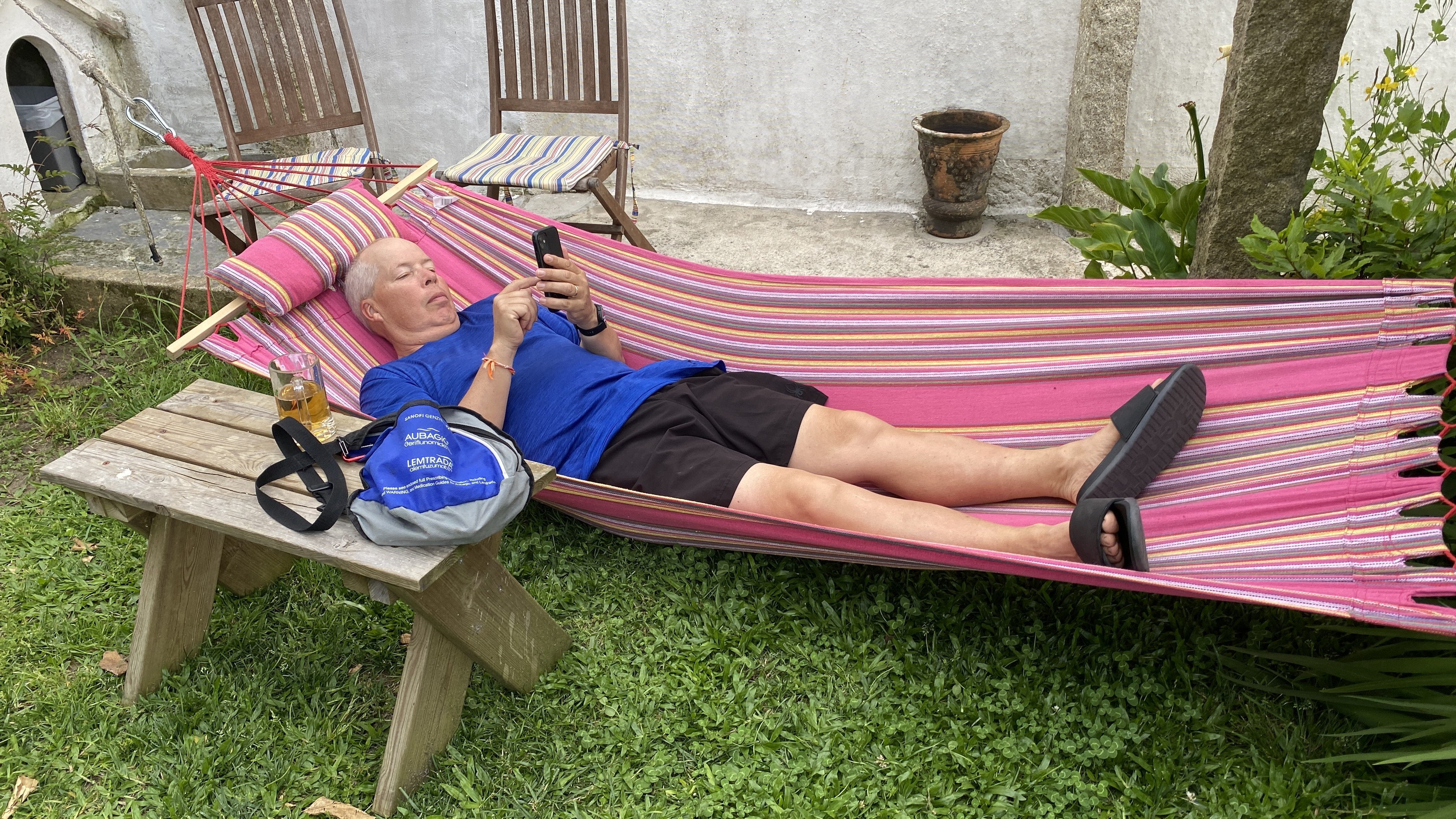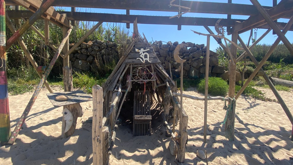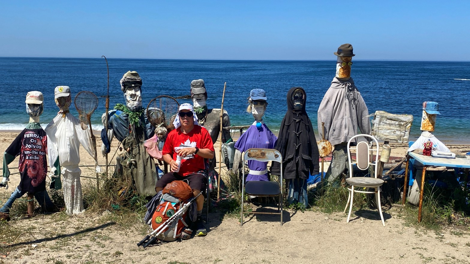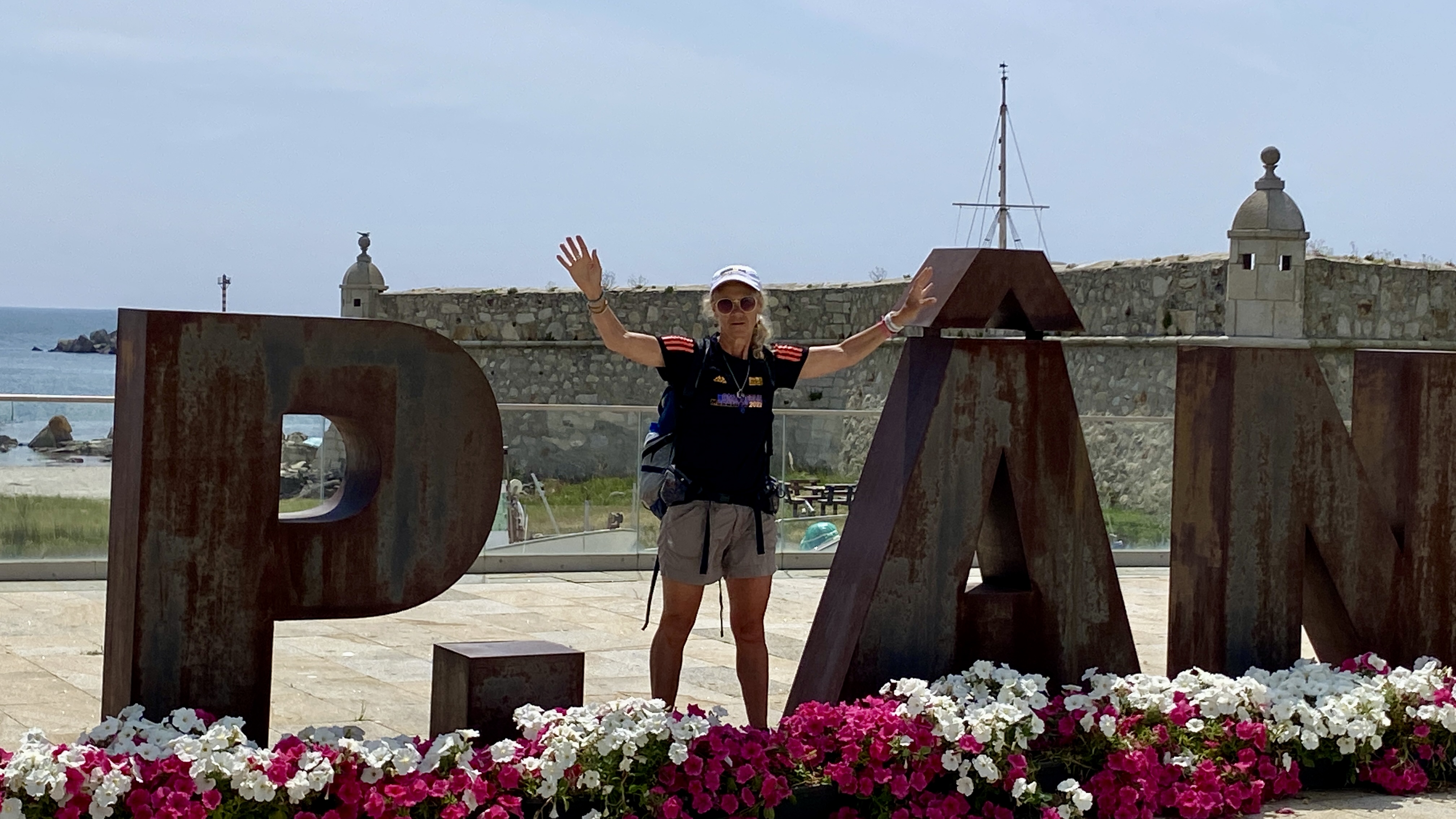 Another day with lots of boardwalks. These eventually lead us away from the coast although it is possible to continue along the water. The more inland route had some shade which we really appreciated. As with previous days we saw fellow pilgrims here and there. We stopped for a bite and discovered a café full of pilgrims. We started to notice that even though we were not passing or being passed by other pilgrims while walking, we saw many every time we stopped. June is not peak season, but we were rarely alone.