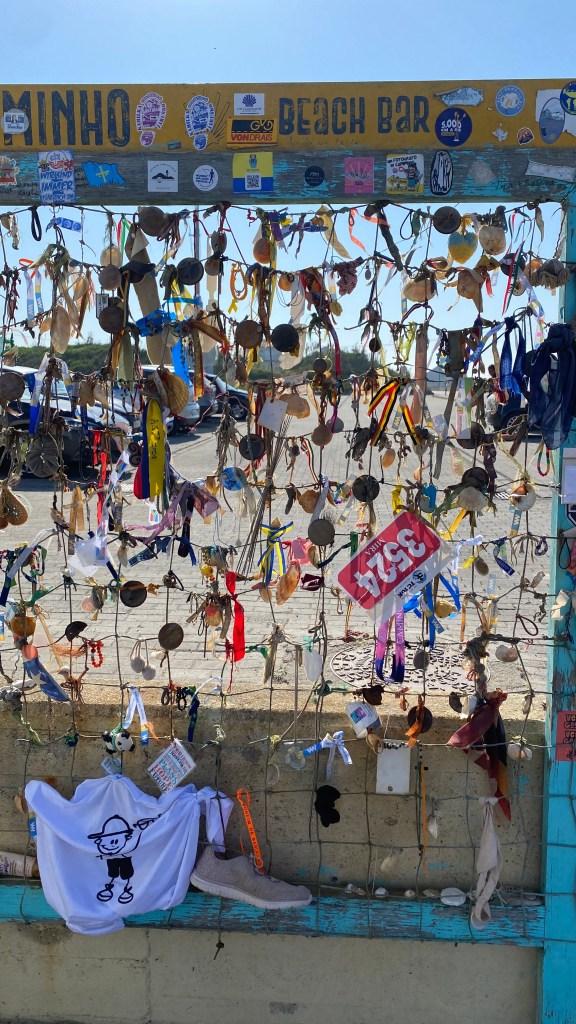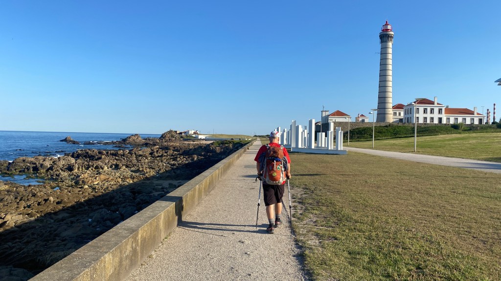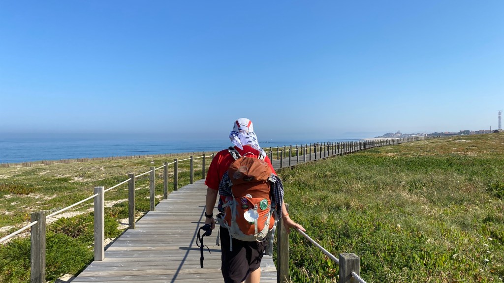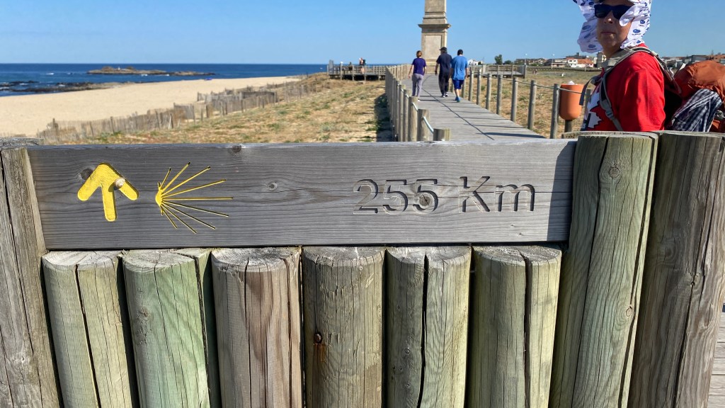 We got an early start the next day and walked out of Matosinhos following the Camino coastal route which is generally well marked with yellow arrows and shells. Most of the day’s walk was along the ocean, with many board walks.
