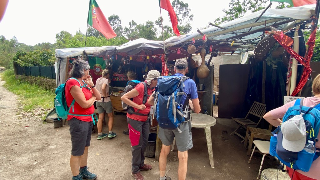 A local restaurant was advertising a great deal on a pilgrim dinner, but it did not appear to be open. Portugal was like that. Restaurants and stores often closed a day a week, at lunch or between lunch and dinner but there were no signs with hours! In Spain and Portugal, they eat late and restaurants often do not start to serve dinner until 7:30 or 8:00 pm. It’s a bit of a challenge when you start early and walk all day. Food was generally cheap, but we cooked a lot because it fit our schedule. We also do not eat red meat so eating out was more of a challenge. The food tended to be meat or fish and french fries with salad as the only vegetables.