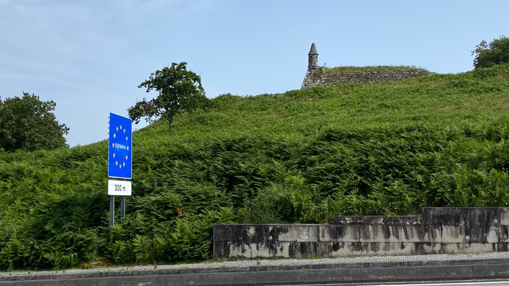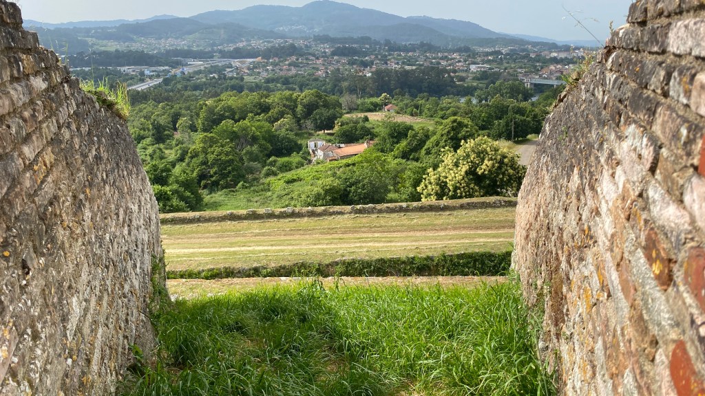 We took a less travelled route on day 6. We crossed from the coastal route to the central route because we wanted to go to Velenca. There are two options you can follow a Camino route through small villages or a new path which goes along the river. We had just had a long hot day and it looked like it was going to be another one so we chose the path along the river. It turned out to be a long way with very little shade and no where to get water or food. We stopped at a grocery store early in the day for a croissant, but we should have stocked up because it was a long way to the next place we found. A small restaurant where we had a snack. We were also very confused by the time. Spain and Portugal are one hour apart in time zones. We were both using Garmin watches and because the river was on the boarder between Spain and Portugal the time zone kept switching back and forth! we spoke to other people who used the other route and got lost so we may ahve made the correct choice.