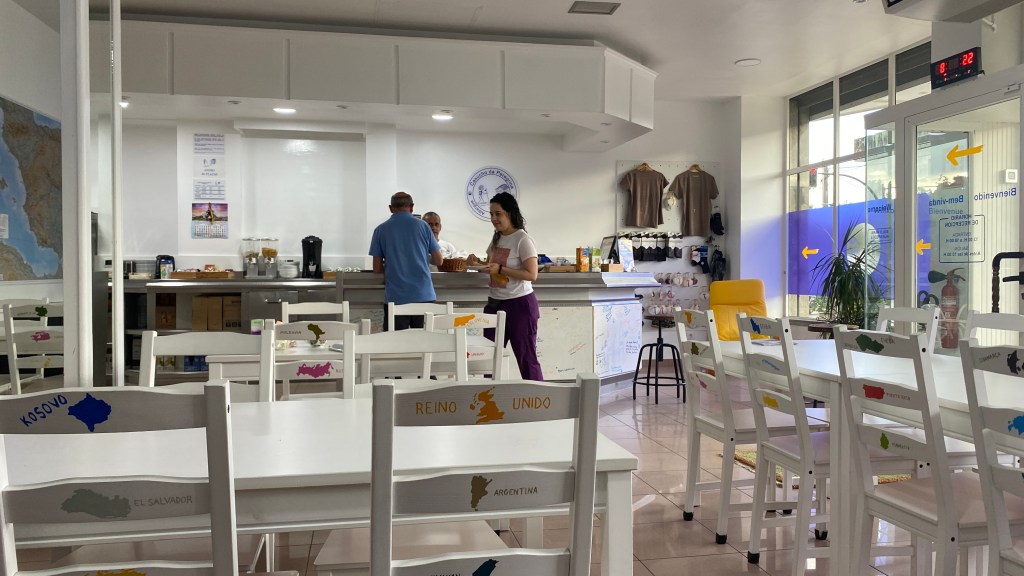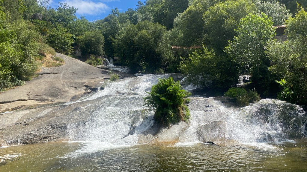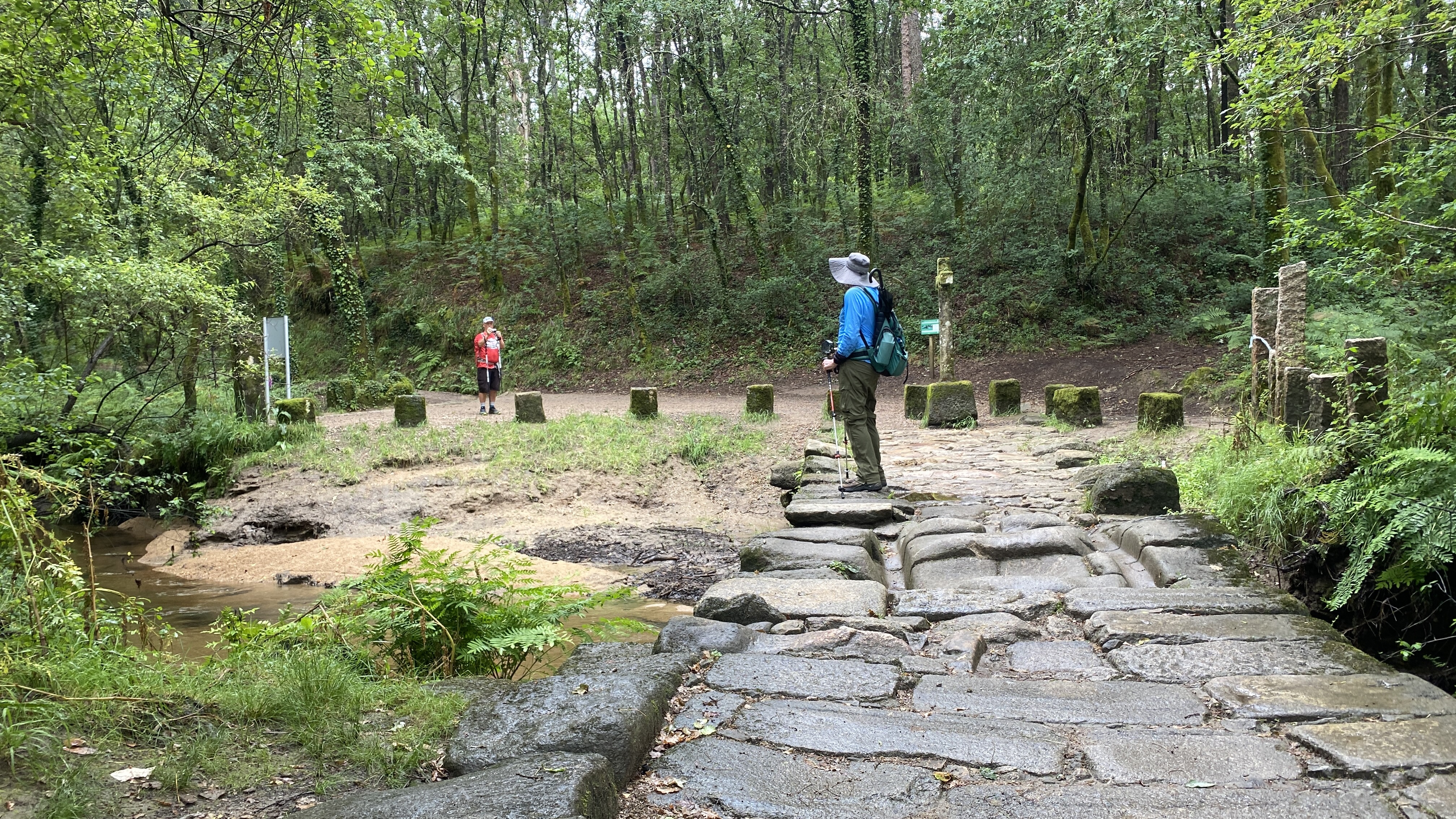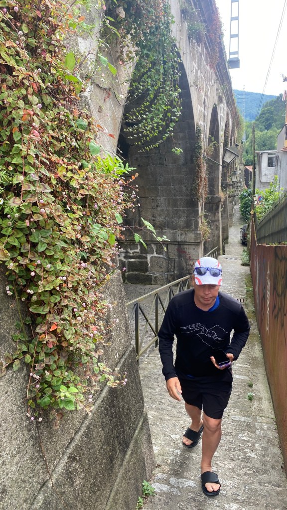 Our original plan was to walk the spiritual variant, but we were having touble finding anywhere bookable to stay so we stayed on the central route. We stared the day with a variation suggested by our hotel which took us through a local park. It was a good tip. Todays walk included many paths through the forest, small villages and vineyards. Caldas De Reis has a public hot spring in town which was great for sore feet. We stayed at Albergue a Queimada. It’s a big hostel with big rooms. No curtains but the beds were well seperated. Nice big common area.