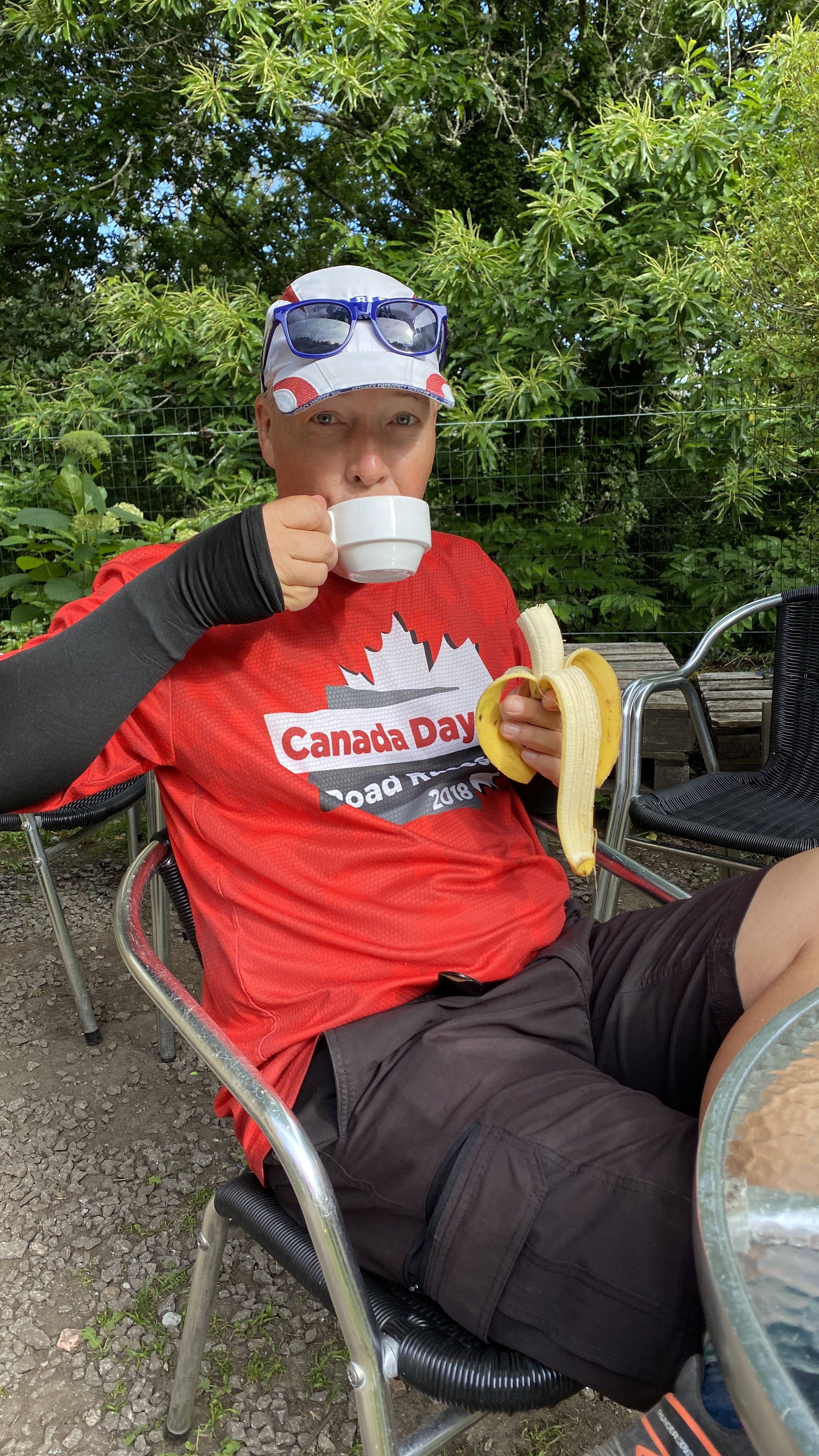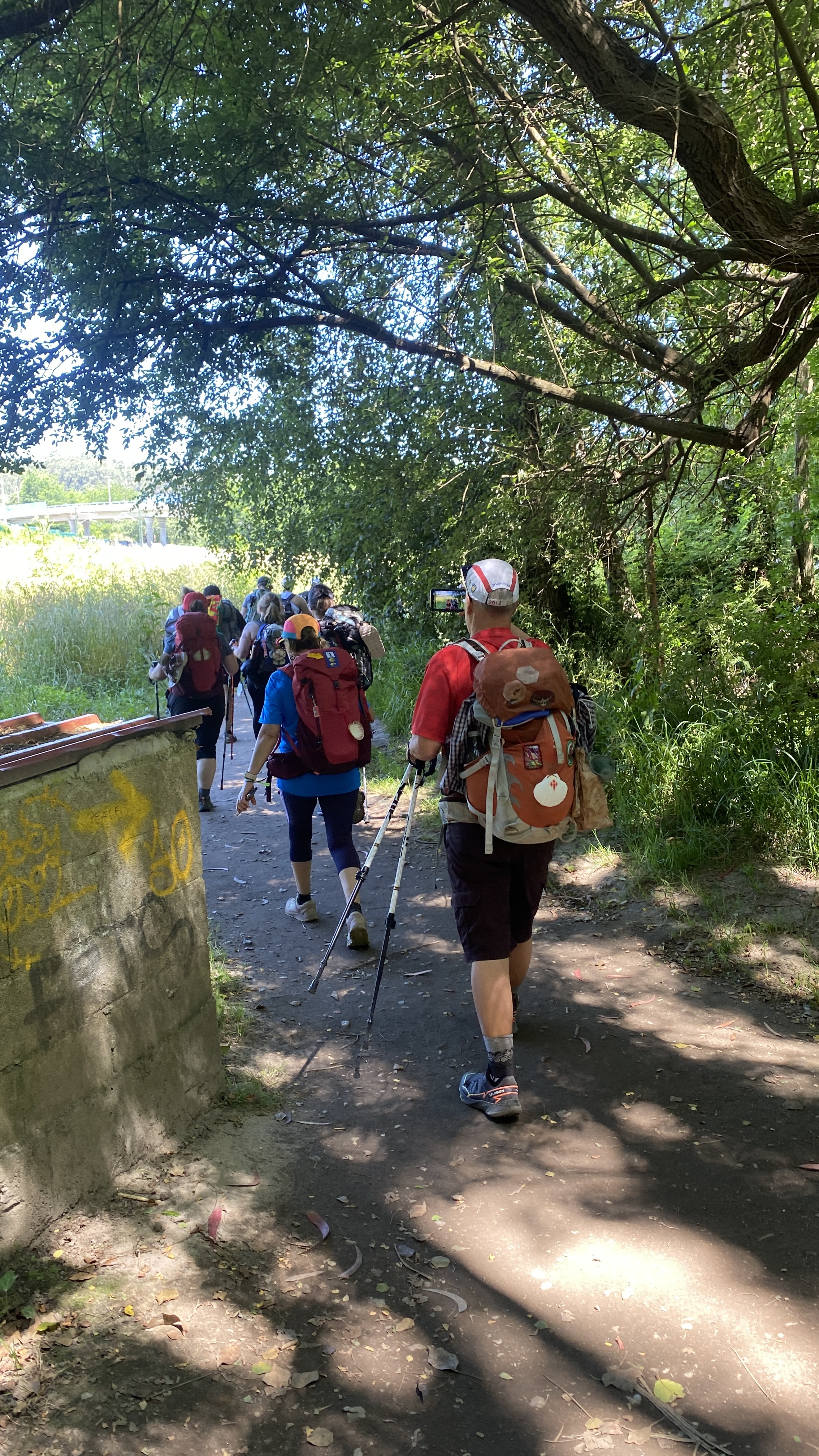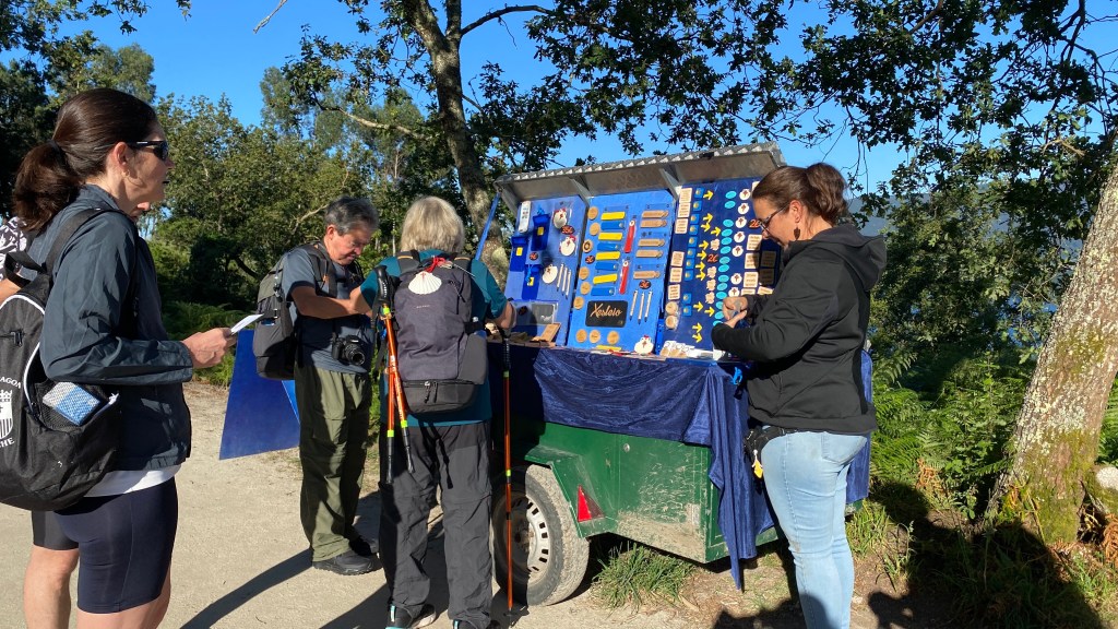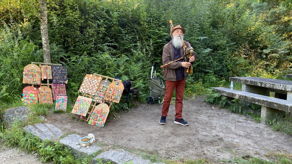 This was one of the hillier days of the trip. We walked through vineyards and small villages which reminded us of rural Germany. Because we were now in the “under 100 km” zone there were more “pop-up” experiences along the forest paths. We came across stalls and a bagpiper. There was one stall on top of a hill that is so famous it’s on google maps!