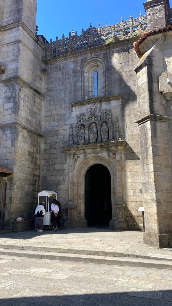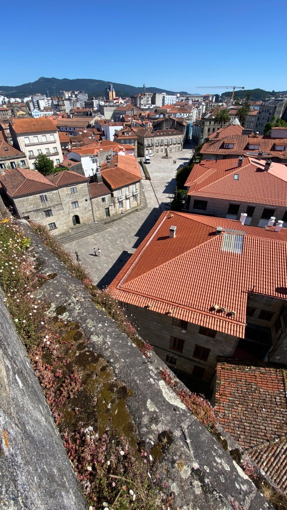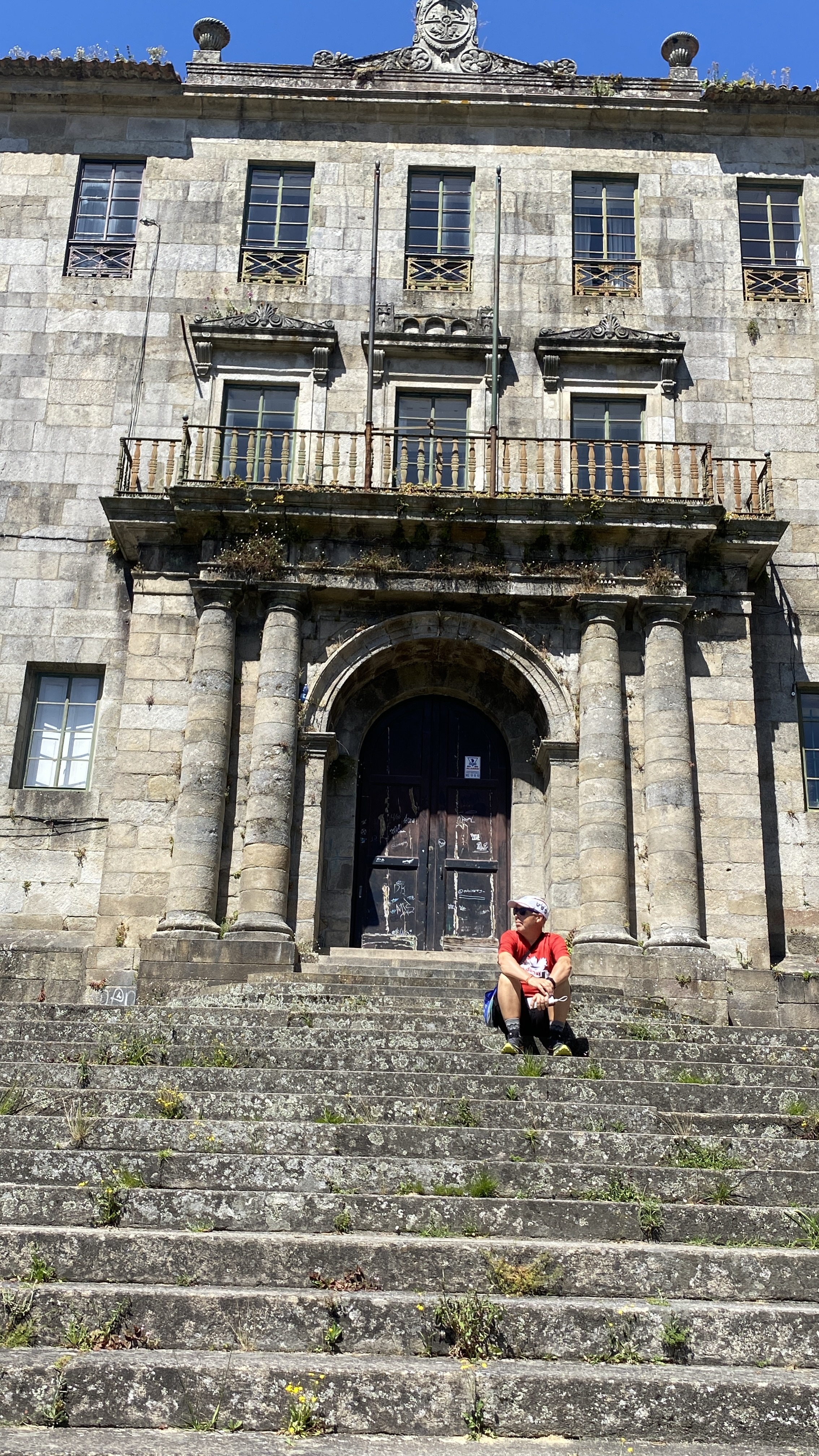 We stayed in a private room with a shared bathroom. Dorms are interesting but it’s easier to sleep in your own room. We went out for dinner which was good, but this being Spain it was not served until 8:00 pm. Pontevedra has a nice central square with some beautiful churches. We donated one euro each to climb to the top of Basilica Santa Clara which has a small museum and a great view. We stayed at Pension Santa Clara. The location was great, shared bathrooms. The rooms are pretty dated but it was clean so we were happy with it.