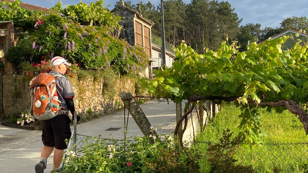 Today’s walk passed though many small villages and we were once again surrounded by vineyards and small farms. Ten km in we stopped at a pilgrim café, A Casina Faramello, on the side of the trail for a one euro coffee. The owner was one of the many people we met along the way who was obviously there to meet pilgrims and share in their experiences.