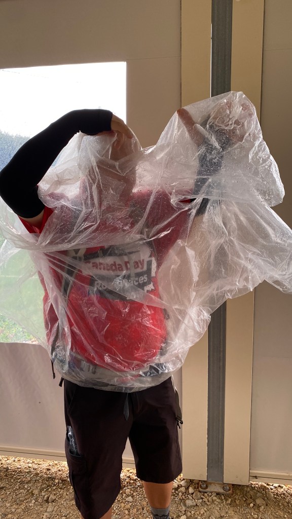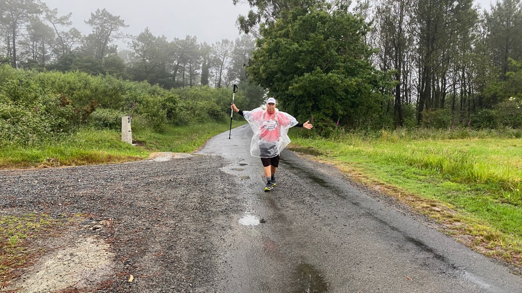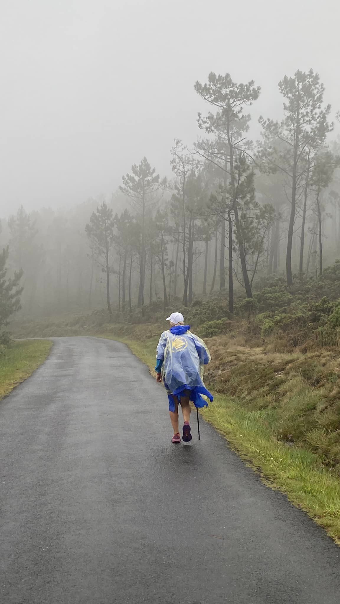 Todays walk was even wetter than yesterday’s and the wind was vertical at times. At least one person we met decided to take the bus to the next town. We walked though forests that almost looked like Canadian Shield but we were mostly wet and cold.