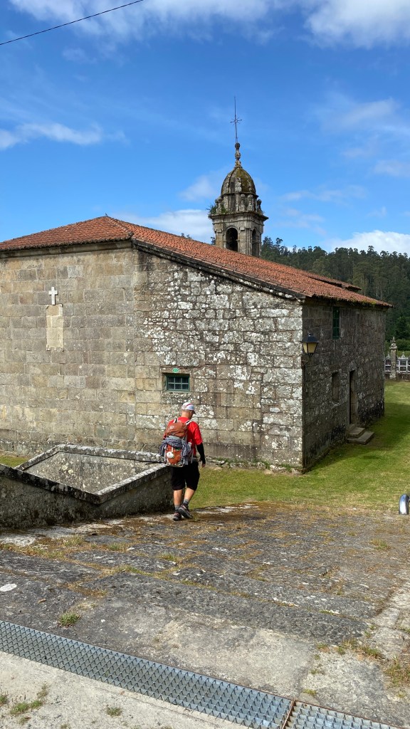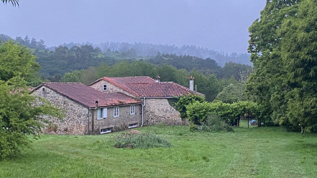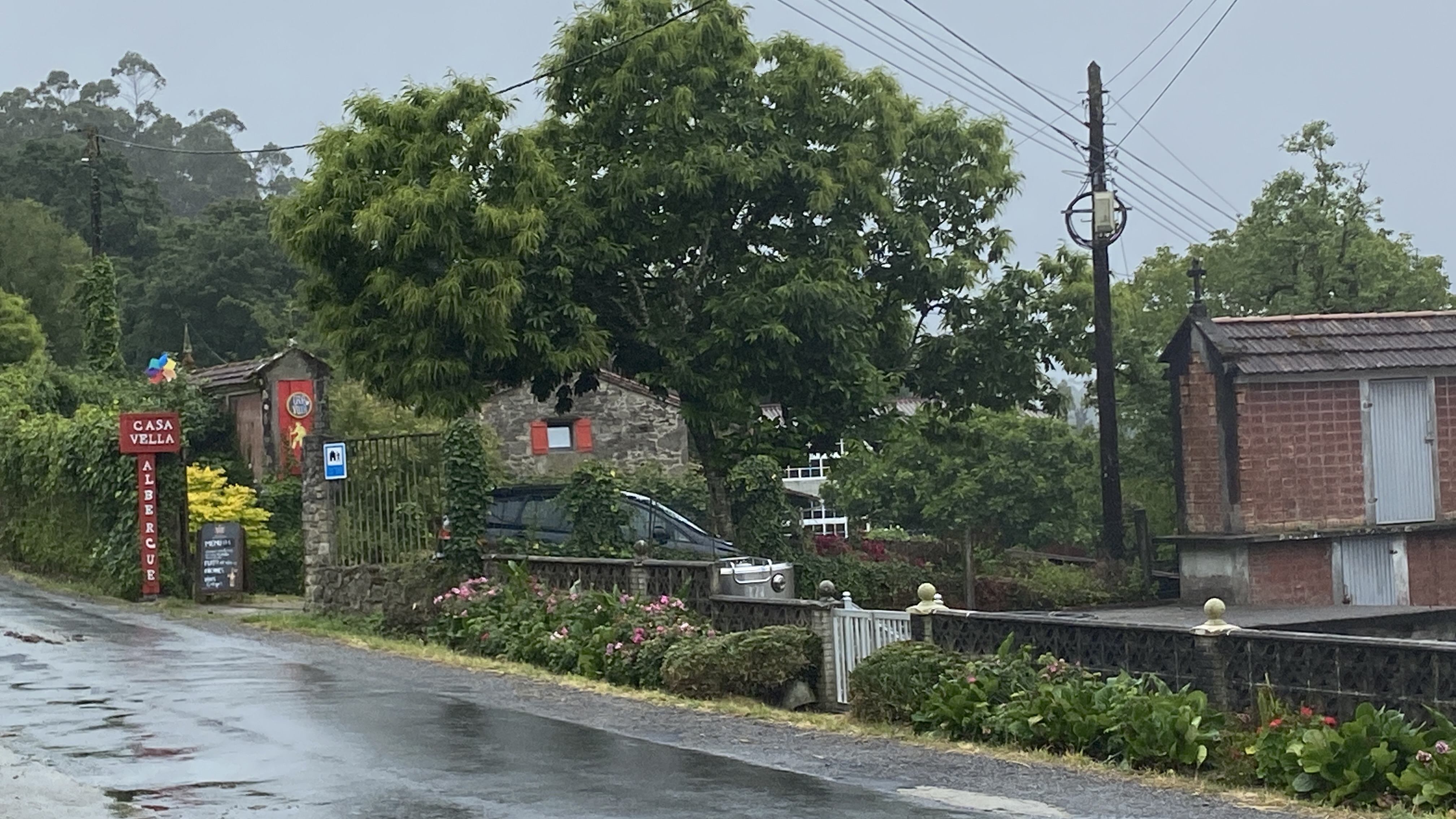 The first open place we found was only a couple of km from where we were spending the night so we kept going, We stayed at O Cabanel Albrgue which was a separate building behind a bar. It was nice and would have been lovely on a dry warm day. We had a private room but we did not need it. There was just us and one other woman staying in the whole place. There was a great kitchen but no where to buy food so we ate at the bar with the owners and one local couple. We had eggs and french fries for dinner. Not our usual fare, but we don’t eat red meat so the choices were a bit limited. For reasons I can not explain they serve french fries with almost everything on the Camino.