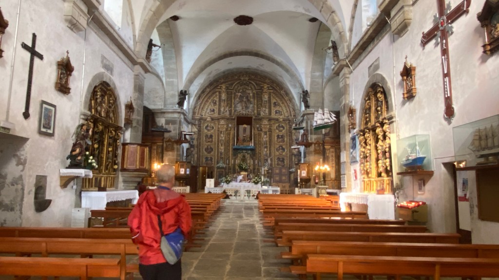 Our original plan had been to walk the 30km along the coast from Muxia to Fisterre but the forecast looked wet again and walking along a wet windy path did not have a lot of appeal. You can take a bus from one town to the other. We decided to compromise by taking a bus to Cee and then walking the rest of the way to Fisterre. Cee is a big city and has some wonderful churches.