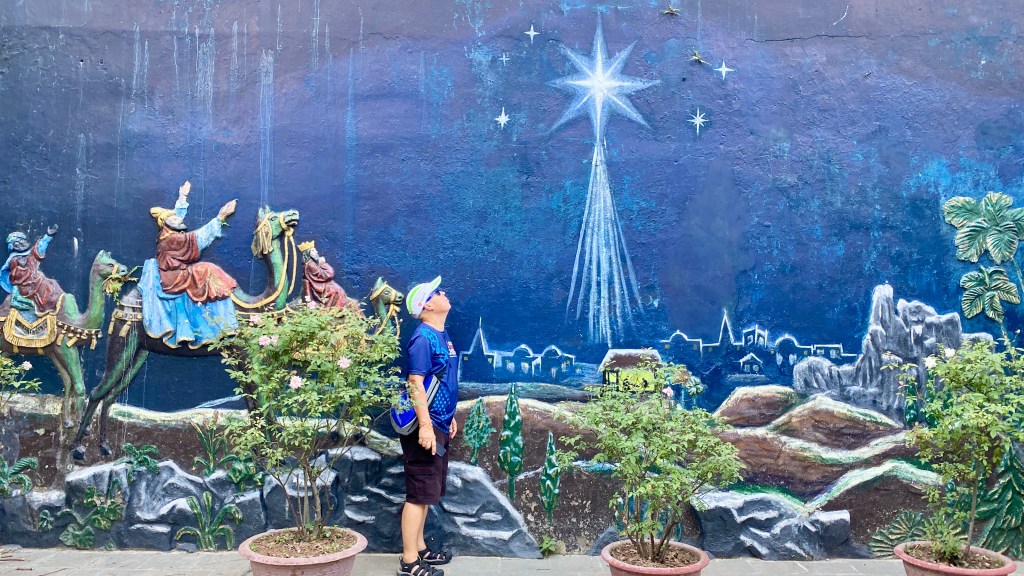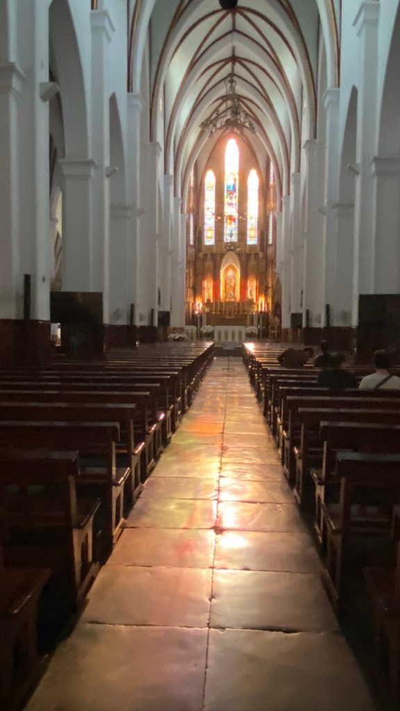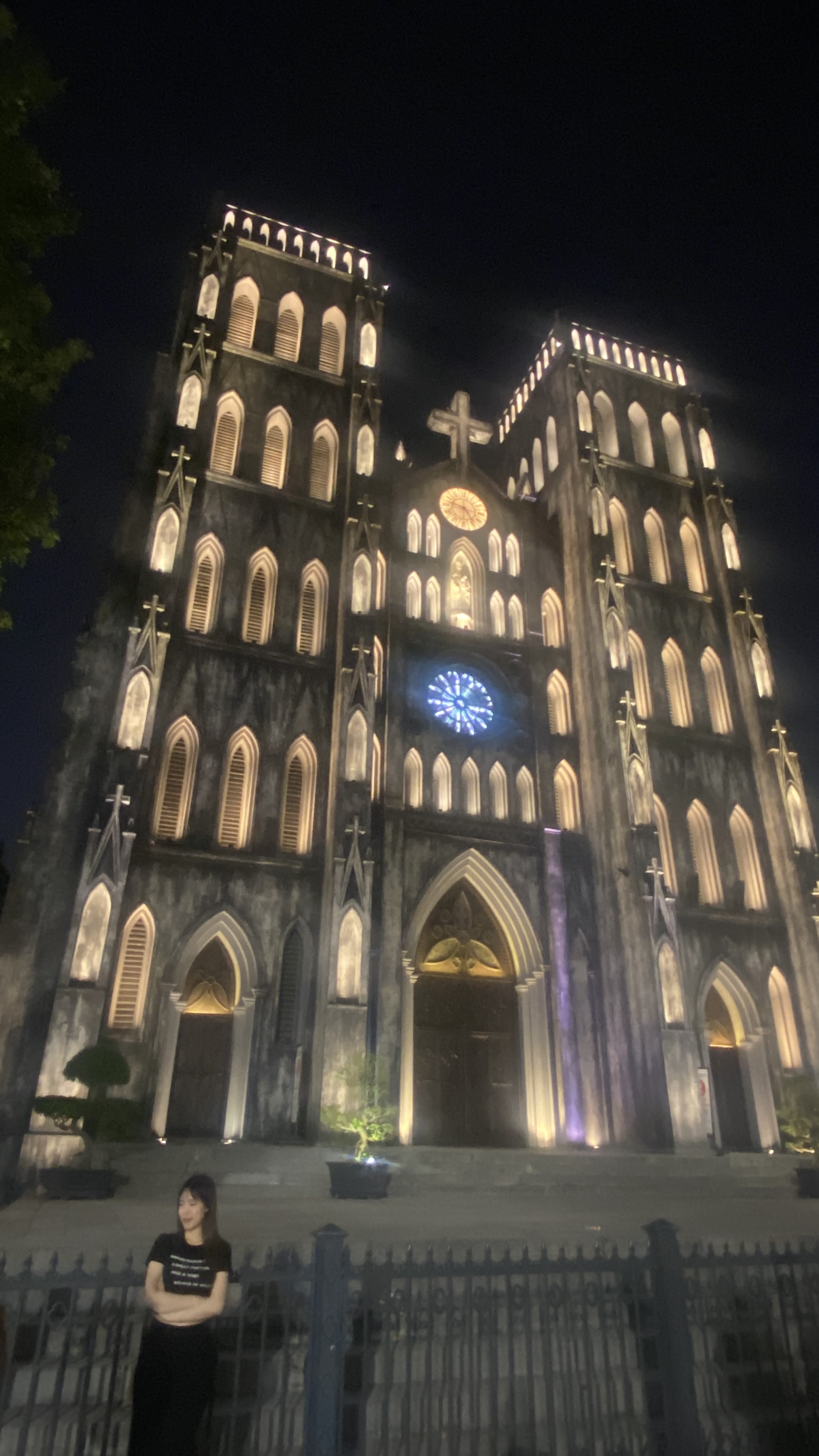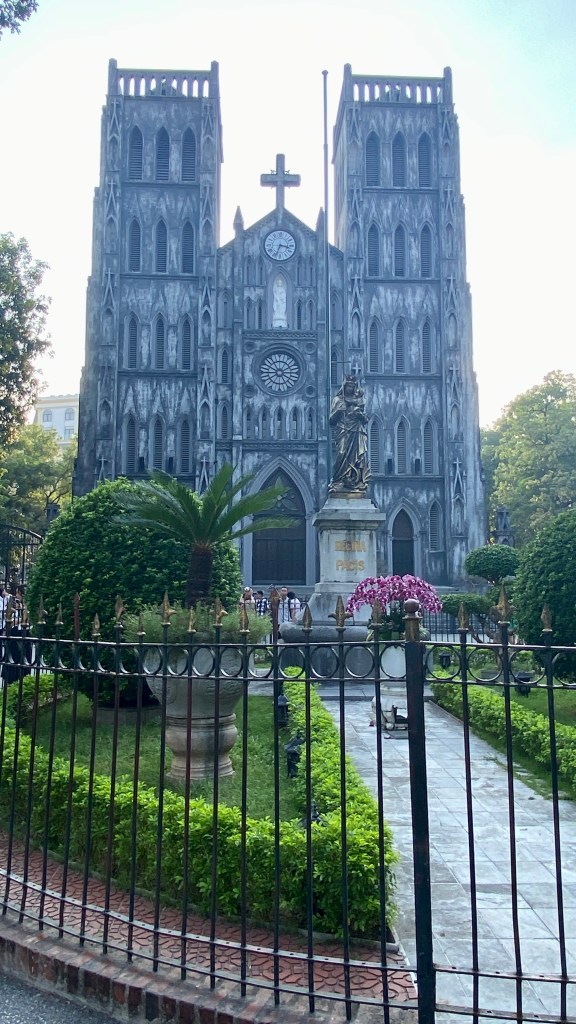 Also just off Ho Hoam Kiem. A nice cathedral. Check out the murals behind it and the lights at night.