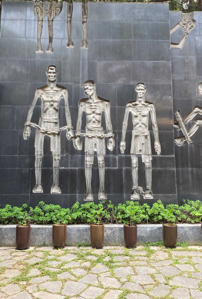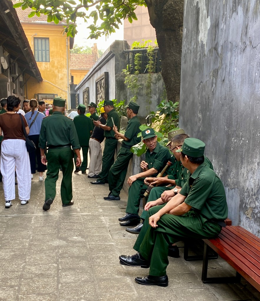 The infamous prison where American pilots were held during the Vietnam/ American war. It was actually built by the French in 1896 to hold Vietnamese political prisoners. Only the guard house is left. It’s now a museum which reflects on Vietnam’s struggles for independence, the harsh treatment of the Vietnamese political prisoners and how well the American pilots were treated. The American version about the treatment of the prisoners is not quite the same. There are lots of signs in English and you can get an audio guide. We did not. 50,000 VND and definitely worth a visit. There is a memorial garden where ceremonies are held. We saw groups of veterans and young military cadet groups when we were touring around.
