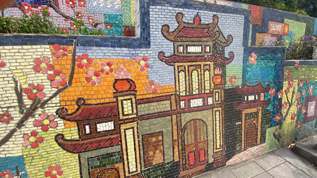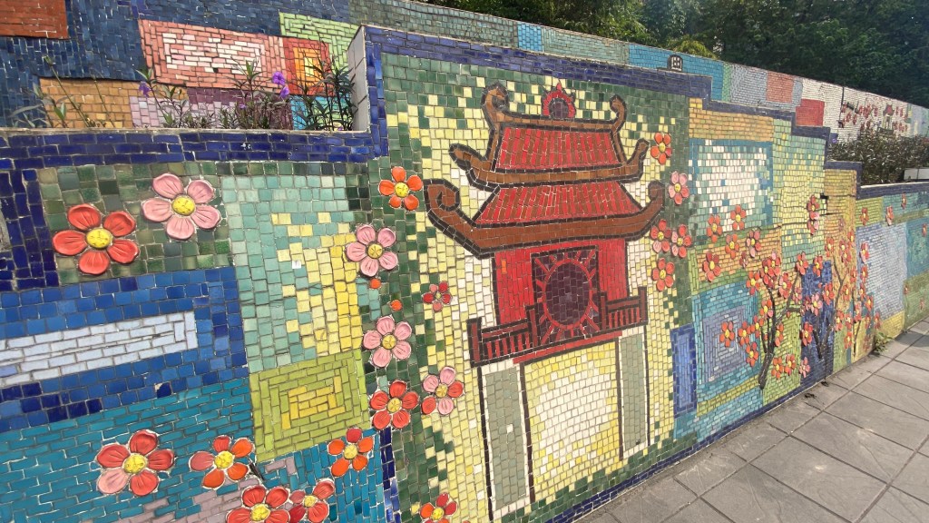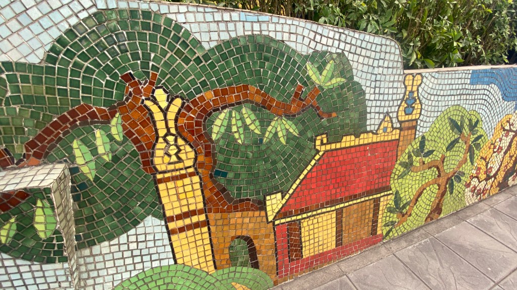 This series of ceramic mosaics must be over 1 km long. Very cool. The location is a little odd as it’s along a major road packed with traffic.
