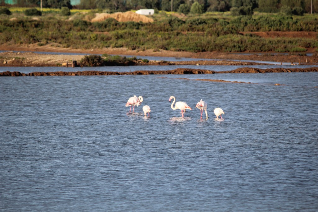In many parts of the coast there is a large sandbar which protects the coast from the sea. This provides a natural estuary for birds. Many birds migrate through the area. We saw lots of terns and nesting storks all over the place without trying to look for birds. We did go looking for the flamingos and found them in the salt flats outside Travia. We saw 100’s from the train as well. None of them were cooperative enough to come close for good pictures without a really good camera. Serious bird watchers would be very happy here.