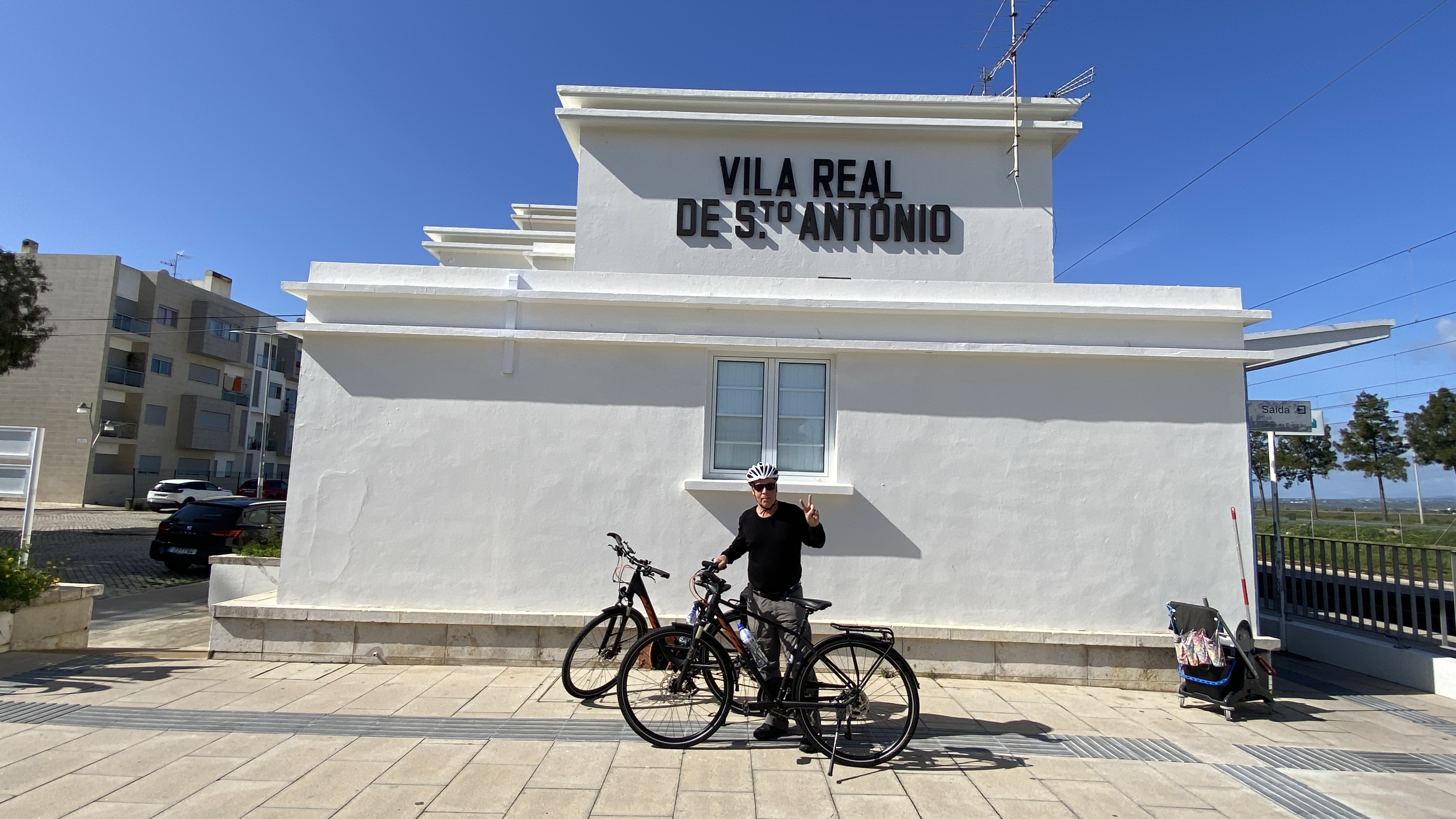 There is regular train service along the coast from Sagres to Real and you can bring your bike with you on the train. There is an app and website available with schedules. You can buy tickets on the app, but you can also buy tickets at the station and on the train. If you are travelling with a bike you have to buy your ticket on the train although there is no charge for the bike. I have no idea why!